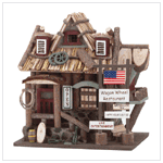 Birds can stop in for a bite at the "Wagon Wheel Restaurant" that this wooden birdhouse represents. It sports such playful signs as "Happy Hour" and "Satellite TV." 9" x 7" x 9 7/8" high. 32187 $ 19.95