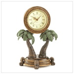 Swaying palms planted in a magnificent wicker woven pattern-edged mahogany-toned footed base hold a matching clock in their gentle breeze-blown leaves. Alabastrite. 6 1/2" x 4 5/8" x 9 3/4" high. 36005 $ 29.95
