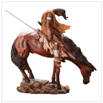 Recreation of the "End of the Trail" sculpture. Detachable spear and feather. Alabastrite. 9 3/4" x 4 1/2" x 9 3/4" high. Base 6 7/8" x 4 3/4" x 3/4" high. 31058 $ 44.95