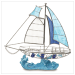 Reminiscent of a racing yacht, this sleekly designed homage to the high seas is worthy of a place of distinction on your mantle! Intricately detailed in stained glass, you can practically feel the spray from the ocean waves on your cheek! Glass, polyresin and metal. 11 1/4" x 2 1/2" x 11" high. 38073 $ 29.95