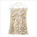 A plump rabbit shares a word with a passing butterfly as both enjoy a blooming garden. A celebration of the joys of spring that brightens your home year round! Countrified wall plaque in weathered ivory finish resembles handcarved woodwork. Powderstone/polyresin blend. 6 5/8" x 1 1/8" x 10 1/4" high. 39053 $ 29.95