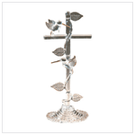 Delicately crafted in glass, hummingbirds gently circle a peaceful crucifix entwined with detailed leaves and a vine. 2 3/4" x 2 1/2" x 6 1/2" high. 29498 $14.95