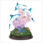 A crystal reef glows with a hauntingly beautiful light, adding undersea magic to a long, dark night! Clear pink “coral” and three dancing dolphins are bathed in a soothing blue glow from a hidden LED light. A fanciful decoration sure to delight the most ardent dolphin admirer! Polyresin with wood base. Uses three cell batteries (included). 5 1/4" x 4 1/2" x 6 1/2" high. 38031 $ 24.95