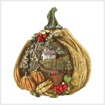 This charmingly crafty pumpkin bursts with country charm! This time-honored symbol of autumn gets rustic appeal from a weathered carved-look finish; a pastoral village scene colorfully wreathed in the fruits of a bountiful harvest adds the festive feeling of fall! Polyresin. 5 1/2" x 4 3/4" x 6" high. 39026 $ 12.95