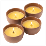 Brighten your surroundings with vibrant sunny color and the warm glow of candlelight! Four candles in tiny terra-cotta pots are the perfect “any occasion” decoration. Unscented. Weight 1.8 lbs. Paraffin wax; terra cotta pots. Each is 2 3/4" diameter x 1 1/2" high. Set of 4. 12036 $ 16.95
