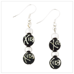 Indulge the "bad girl" in you with these frighteningly fashionable handmade earrings! Black-hearted clay beads emblazoned with grinning skull and crossbones dangle dangerously from your earlobes. A bona-fide style surprise that shows your independent spirit to one and all! Each is 2" long x 1/2" diameter. $ 7.95