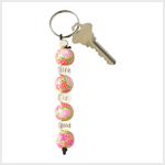 This brightly beautiful keychain is a true celebration of the glory of each day! Handmade clay beads feature an ultra-feminine floral pattern, interspersed with silvertone message beads bearing the fitting reminder that "life is good". A colorful splash of summer to match your sunny mood! Handmade clay beads with metal split keyring. 3/4" x 5 1/2" long. $ 10.95
