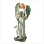 Angel with bouquet garden sculpture. Alabastrite. 10 1/4" x 8 1/2" x 23 1/4" high. 35121 $ 69.95