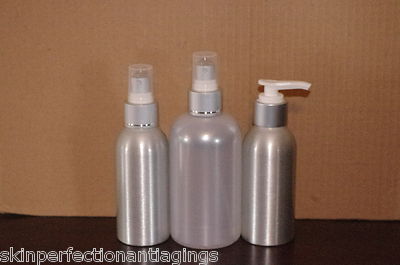 Cleansers in Silver Aluminum Bottles with Silver & White Pumps, 7, 4 oz.