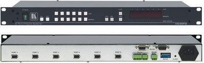 The VS-66FW can be controlled via the front panel buttons, the infra-red remote control transmitter, and remotely by RS-485 or RS-232 serial commands transmitted by a touch screen system, PC, or other serial controller. A large, bright LED display on the front panel shows the current status of the matrix, and the built-in non-volatile memory stores and retrieves pre-set configurations. The VS-66FW is housed in a 19" 1U rack-mountable enclosure