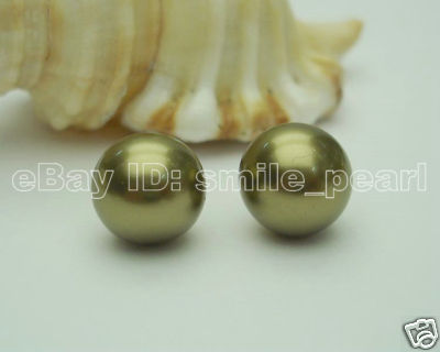 12mm Round Army Green Color Sea Shell Pearl Earrings