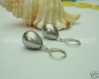 @@ 12*16mm Drop Gray Color Sea Shell Pearl Earrings