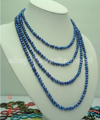76" 5-6mm Blue Color Pearl Necklace (Free Shipping)