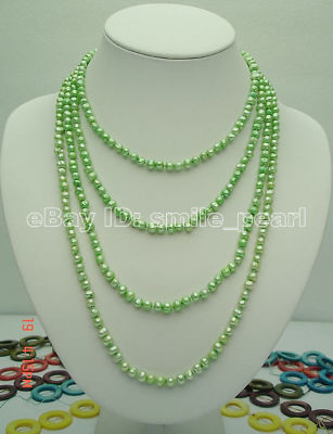 76" 5-6mm Green Pearl Necklace (Free Shipping)