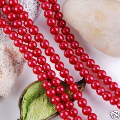 8mm A+ Red Round Crystal Glass Pearl Loose Beads 16"