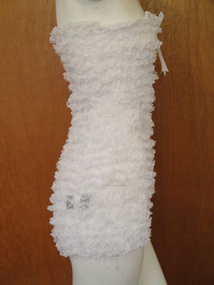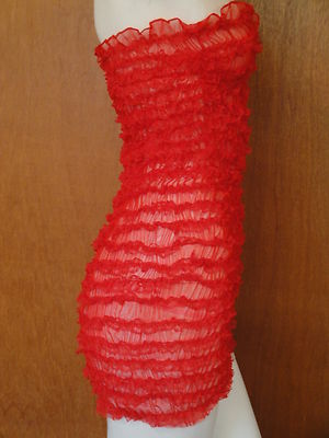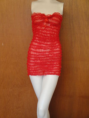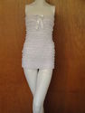 Wrap yourself with the body-wraping shoulder baring ruffly little dress. Elastic material sewn with attention to details. Very simple, with ribbon tied in front for fun accent. Matching color G-string included. Handwash only recommended. 4 colors to choose from: White, Soft Pink, Bright Red, and Black