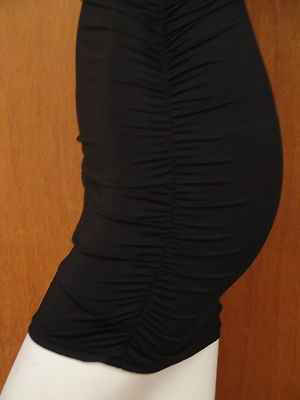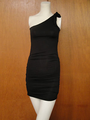 One-shoulder clubwear in solid black or yellow. Simple yet striking design Symmetrical cuts front and back, you can have the shoulder tie on left or right. Subtle draping pleats on both sides at the bottom Great value, soft thick material The mannequin shown in the pictures is size 5 and about 5'8 tall