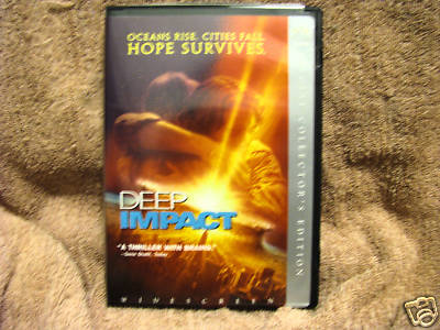 Paramount 05337. Widescreen. Special Collector's Edition. With Vanessa Redgrave and Morgan Freeman. 1998. Colr. 121 Minutes. In a matter of days a giant comet can hit earth. What would you do? DVD and Box are in Very Good Condition. See Our Store Spin A Disc Records and Things. S/H Overseas and Mexico-$9. 1st class International. Canada $5.50. 1st Class International. In The U.S. $3.00 Media Mail. We Ship In New Bags Unlimited Boxes. 3/6/10 Thank you.