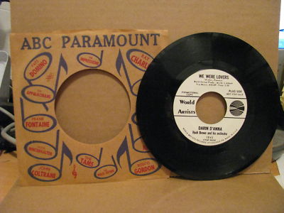 World Pacific 1045. White Label Promo. Darin D'Anna and His Orchestra. VG++ a few light surface marks. Labels VG++. ABC Paramount Sleeve VG++. Buy With Confidence 100% Guarantee On The Price Of The Record. See Our Store - Spin A Disc Records and Collectable. Postage and Handling Overseas and Mexico $6.00 Air-Mail, Canada $3.50 Air-Mail . In The United States- $3.50 1st Class. Postage and Handling adjusted if you buy more than 1 item. See Our Store Spin A Disc Records And Things. We Accept Pay Pal. 2/8/11 Thank You.