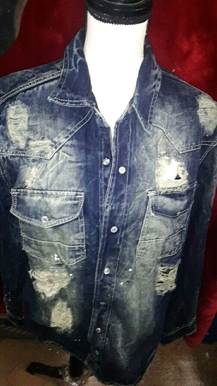 Men's Copper Rivet Distressed/rip Blue Jean Jacket Size Large