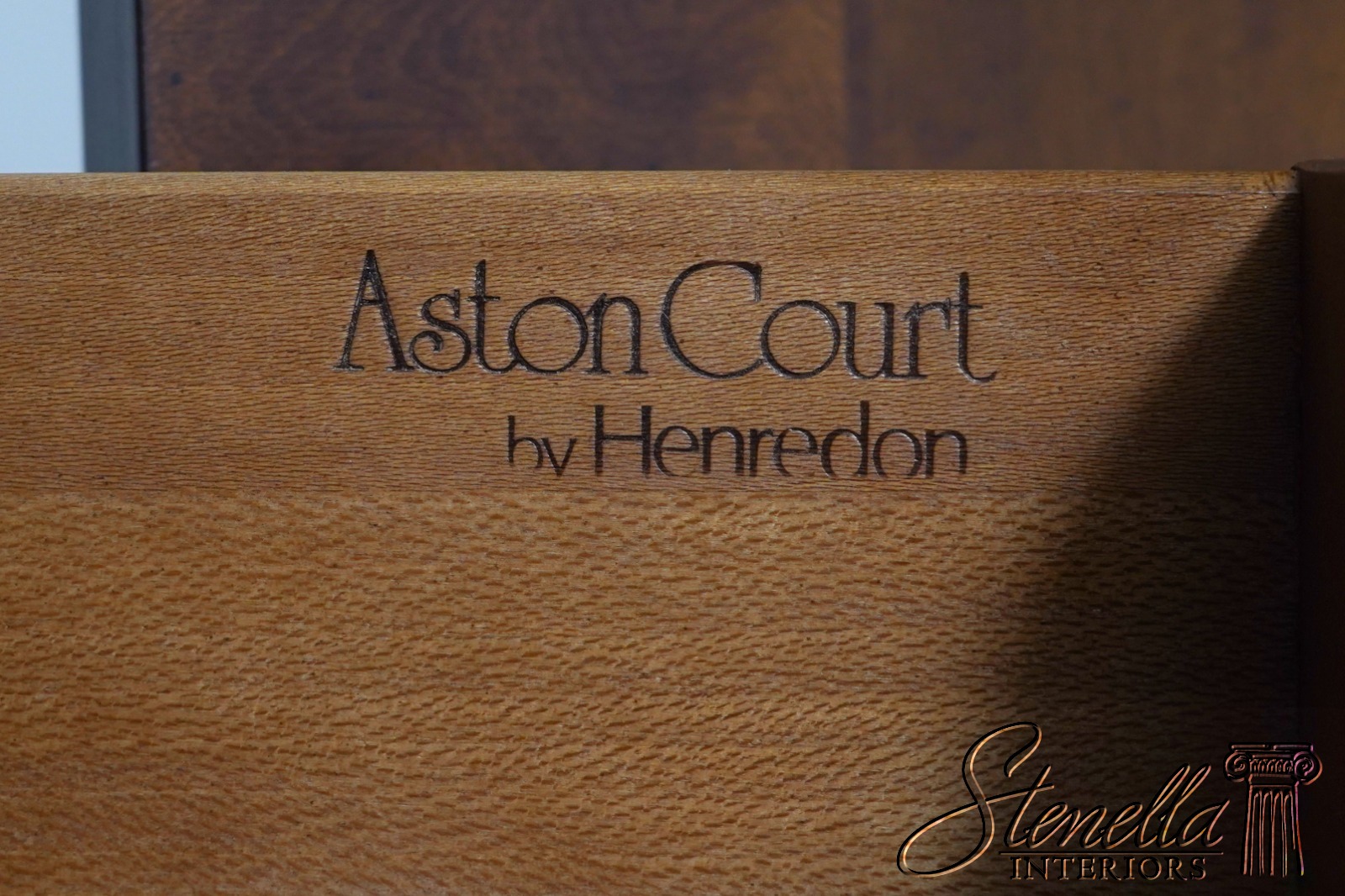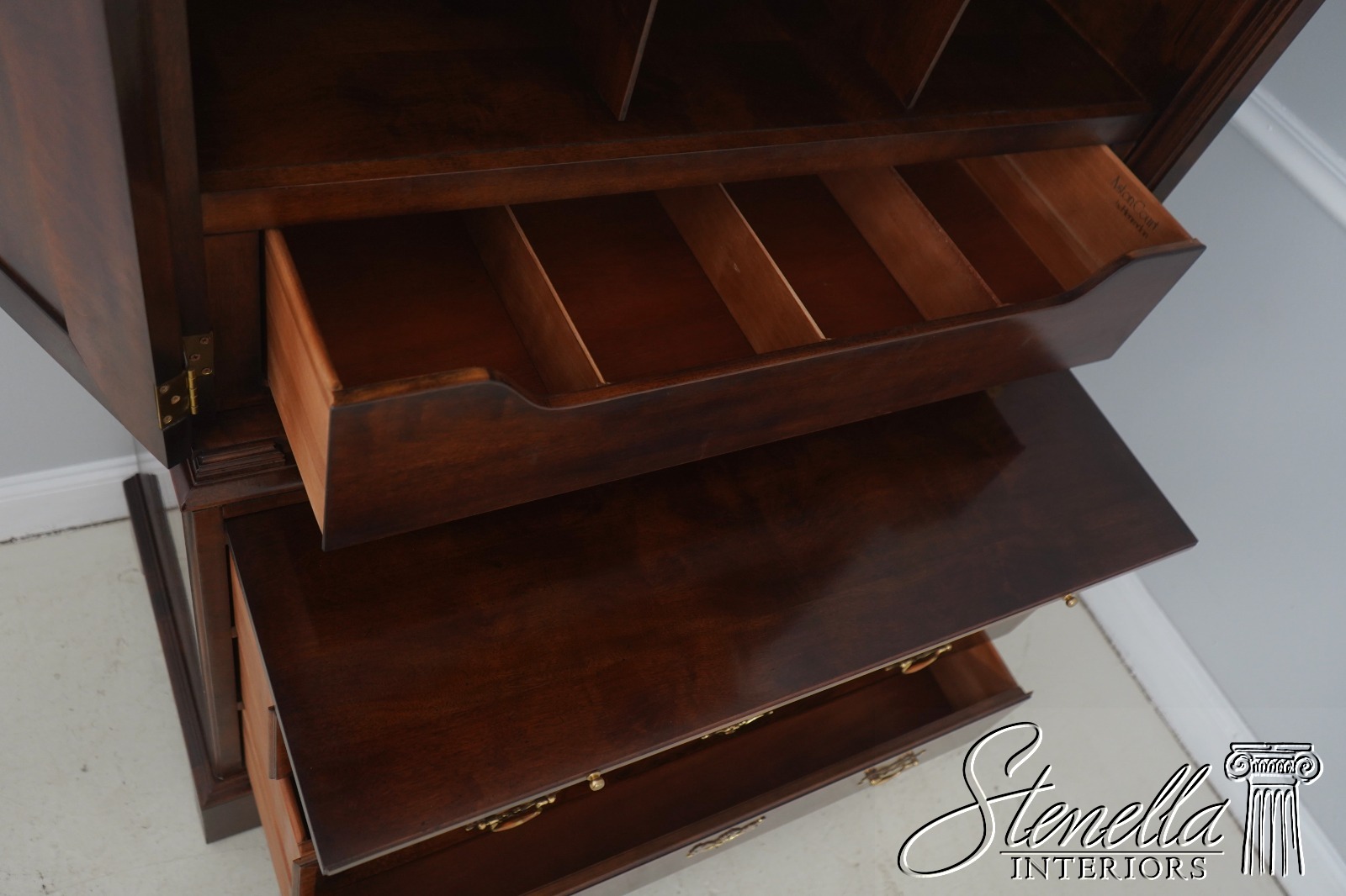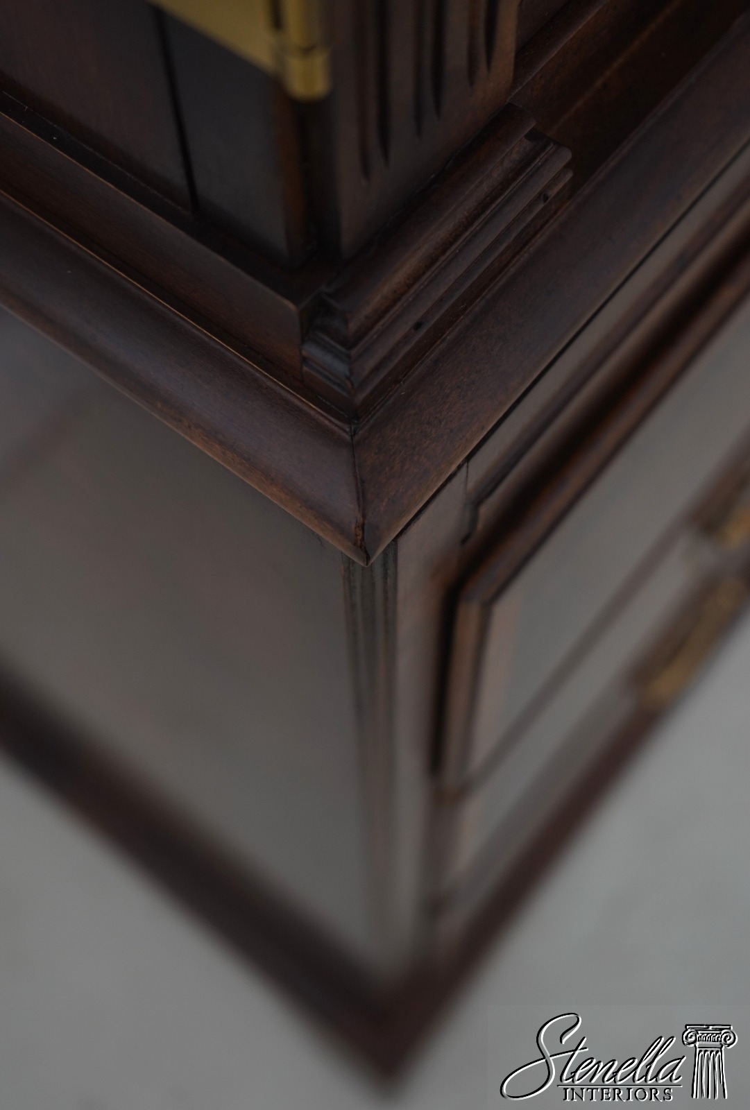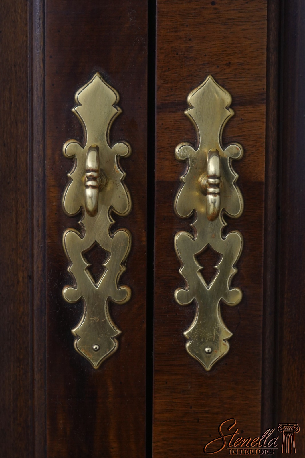 Details: Aston Court Adjustable Interior Shelves Bracket Feet Dovetailed Drawer Construction High Quality Construction Well Cared For Ready For Your Home Raised Panel Doors Traditional Style Pull Out Slide Tray Nice Walnut Finish Solid Brass Hardware