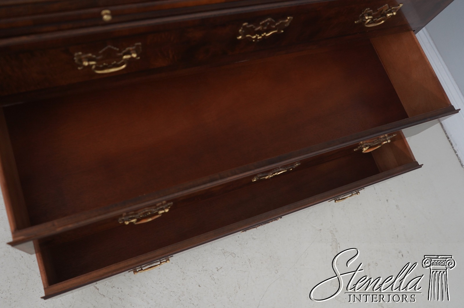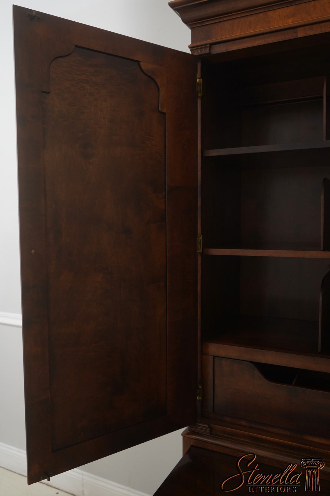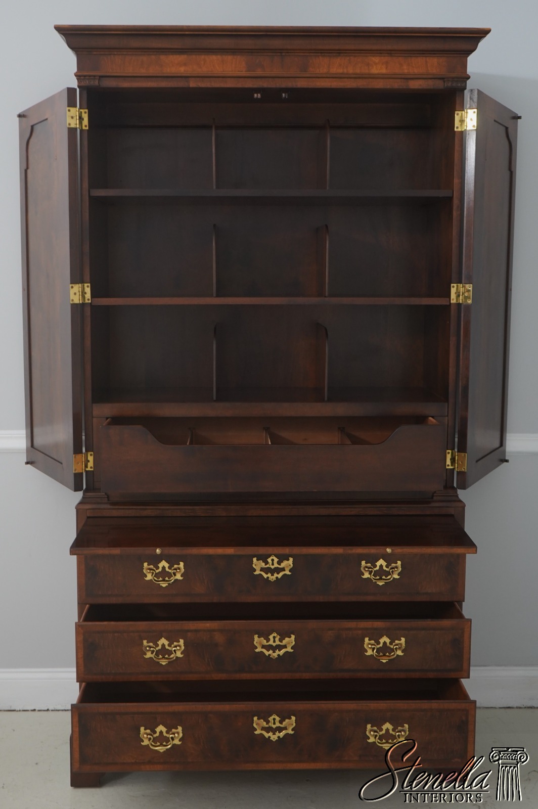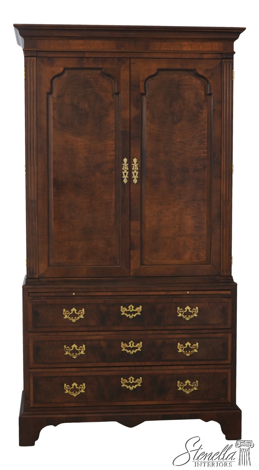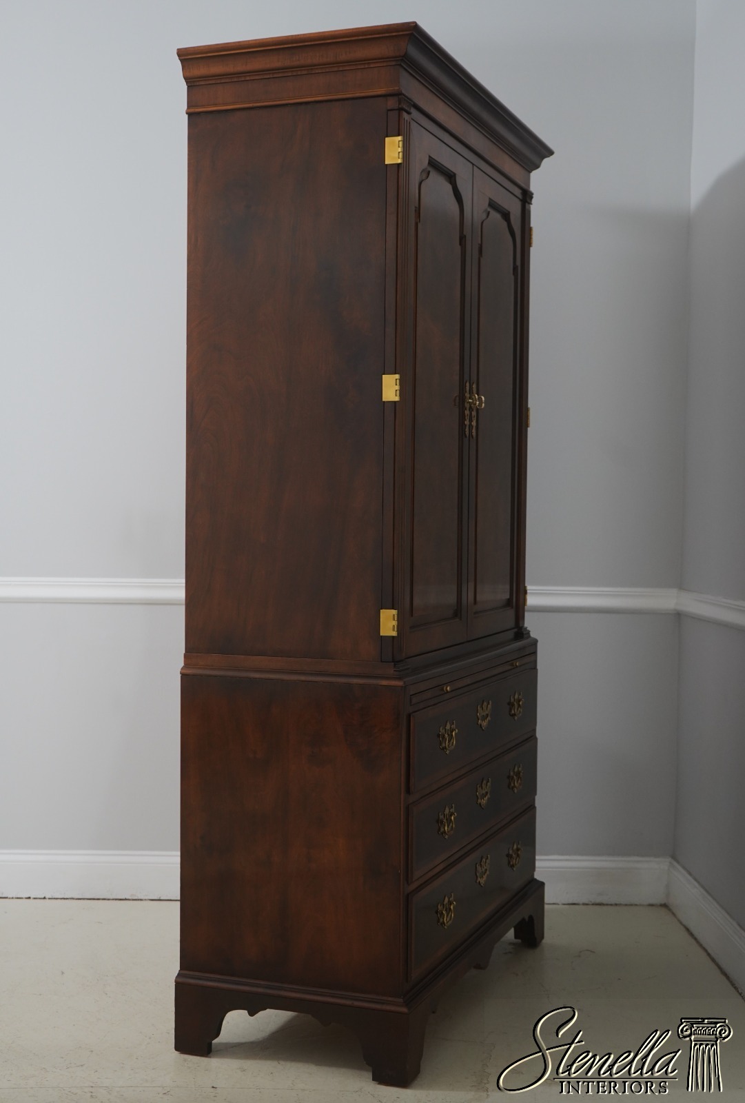 Details: Aston Court Adjustable Interior Shelves Bracket Feet Dovetailed Drawer Construction High Quality Construction Well Cared For Ready For Your Home Raised Panel Doors Traditional Style Pull Out Slide Tray Nice Walnut Finish Solid Brass Hardware