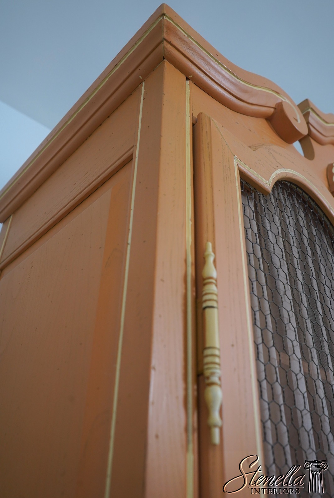 Details: Light Factory Distressing Wire Mesh Doors Dovetailed Drawer Construction Quality Construction See Other Offerings For Matching Armoire Raised Panel Sides Bombe Curved Base Nice Fitted Interior Un-Marked As To Manufacture - Possibly By Century, Henredon Or Similar Manufacture