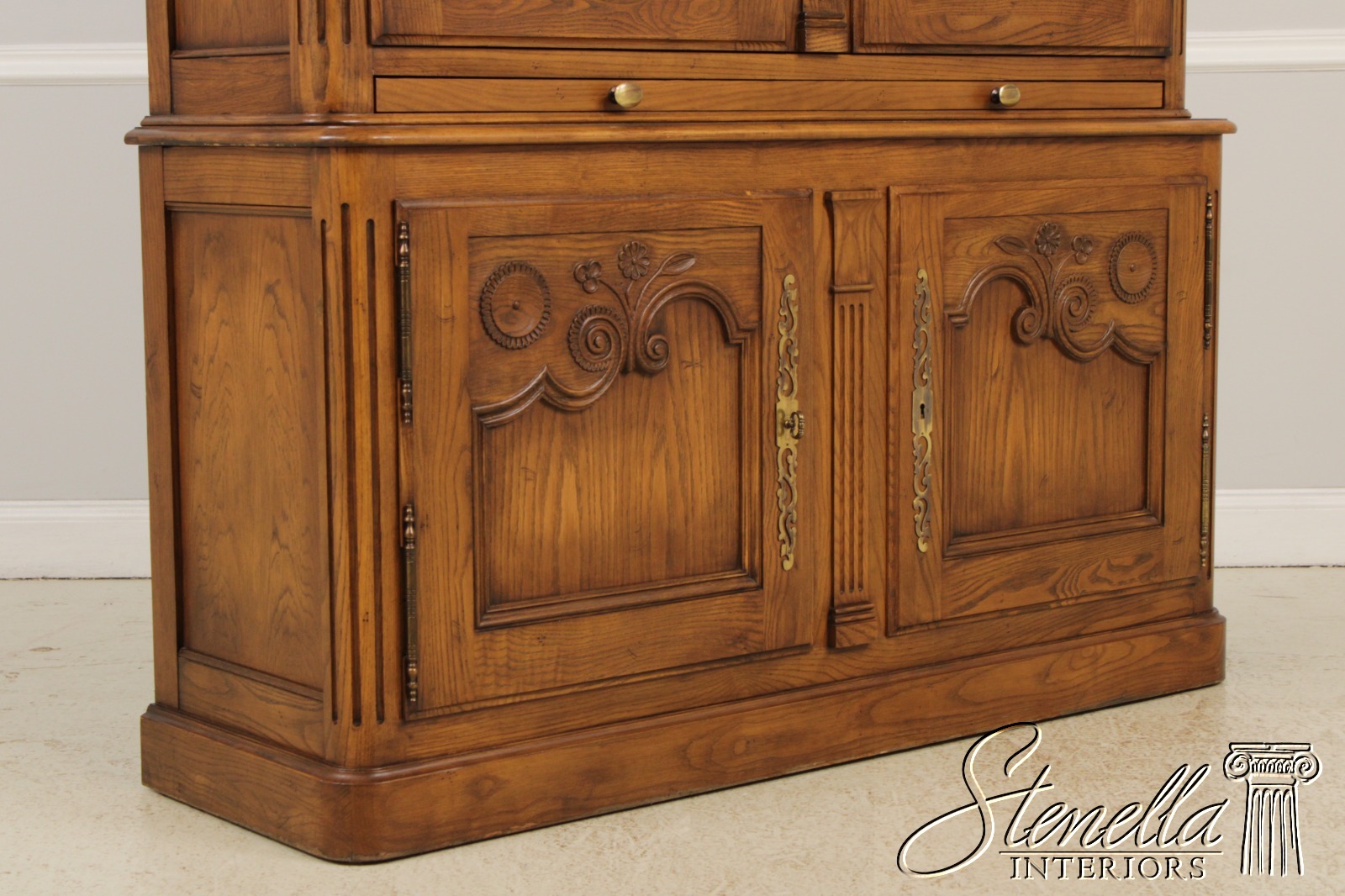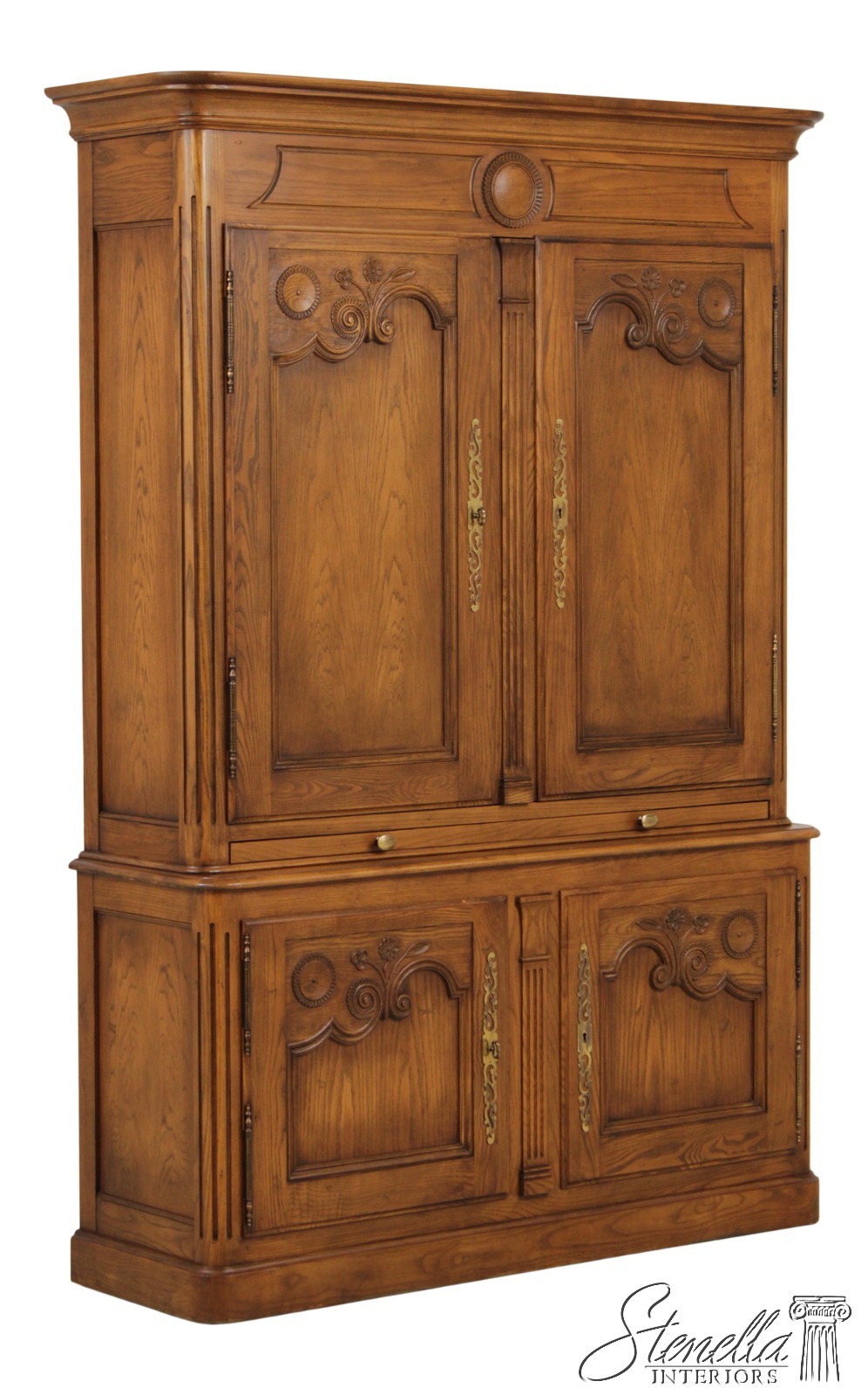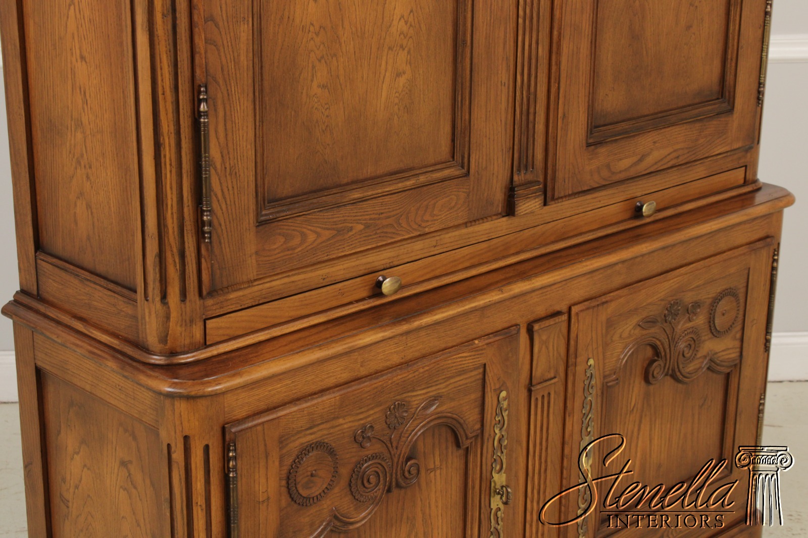 71904: BAKER Oak French Country Armoire Bar Cabinet