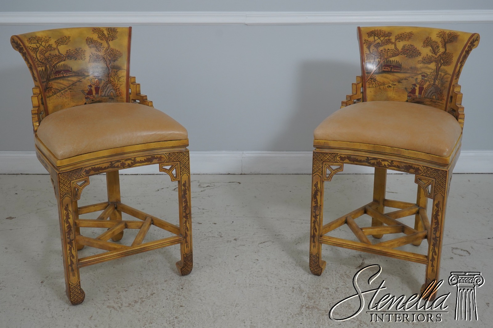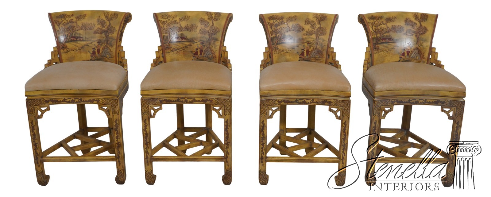 71630: Set of 4 MAITLAND SMITH Chinoiserie Counter Bar Stools