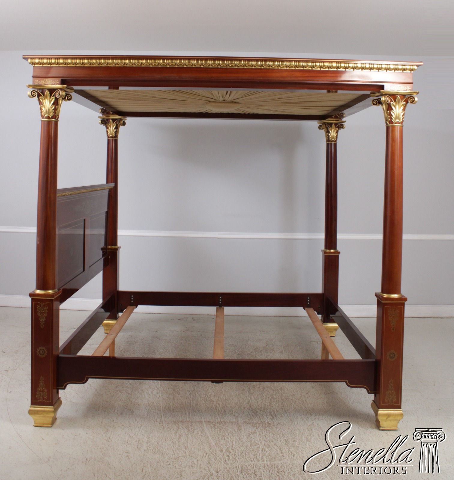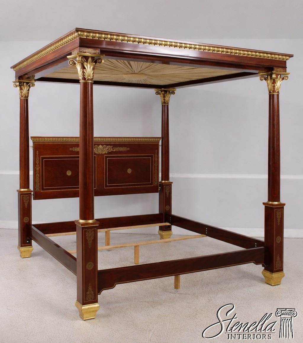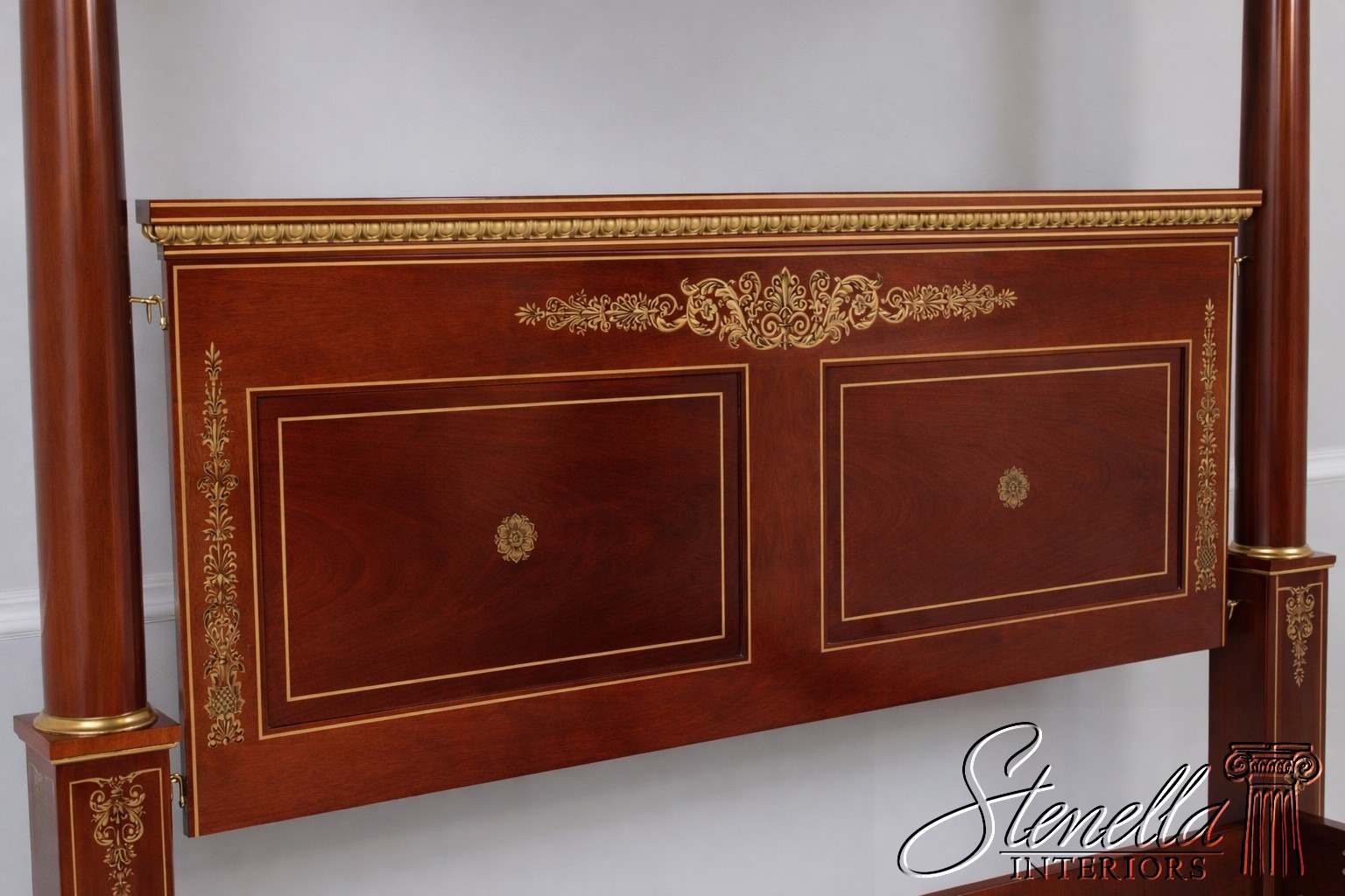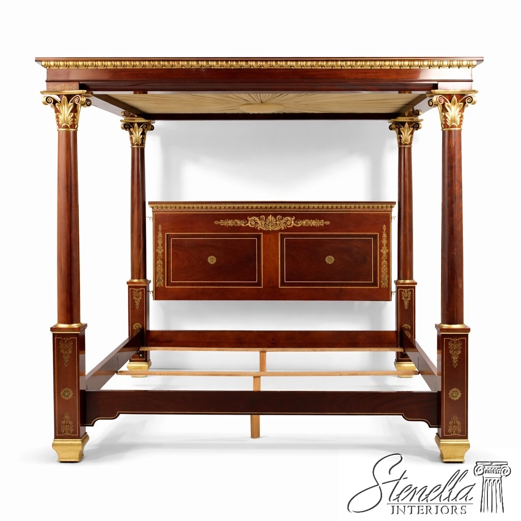 Details: Kindel Masterworks Collection Kent Finish Hand Stenciled Decorated Rich High Sheen Finish High Quality Construction Extremely Rare Model Large Impressive Bed American Empire Style Full Canopy Top w. Pleated Upholstered Insert Genuine Gold Gilt Details Offered @ Fraction Original Retail Cost