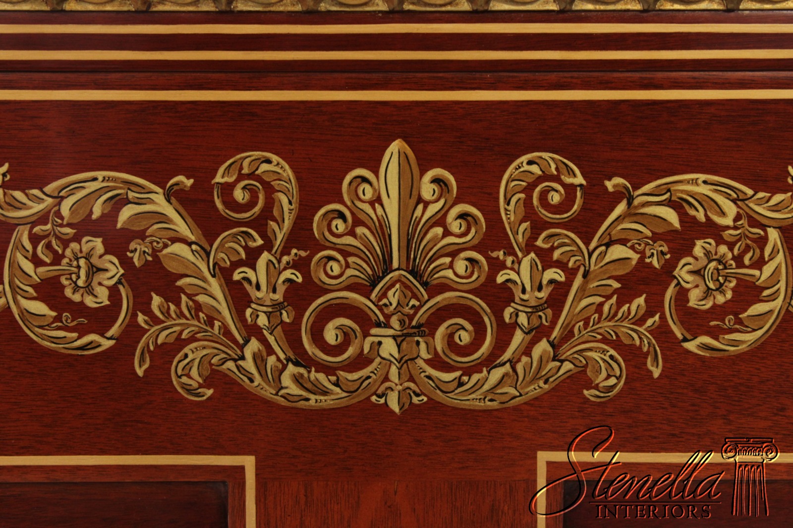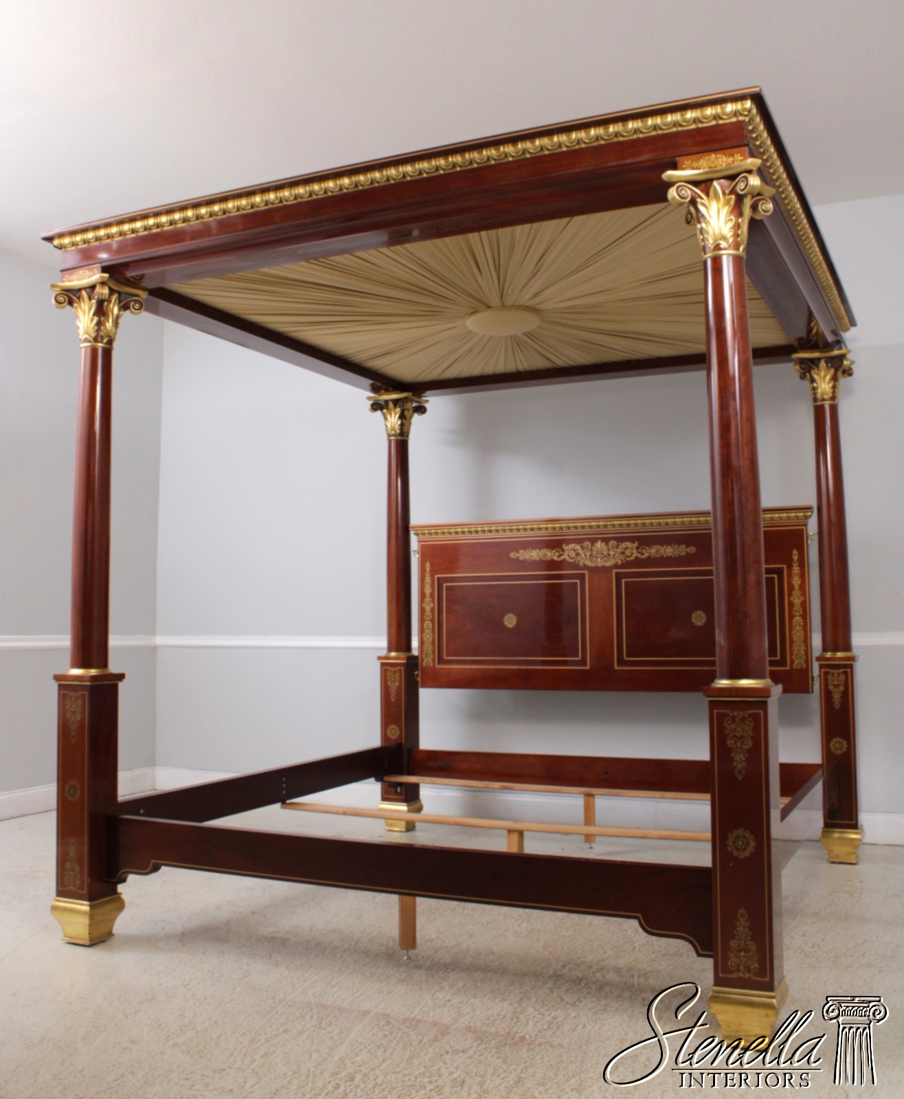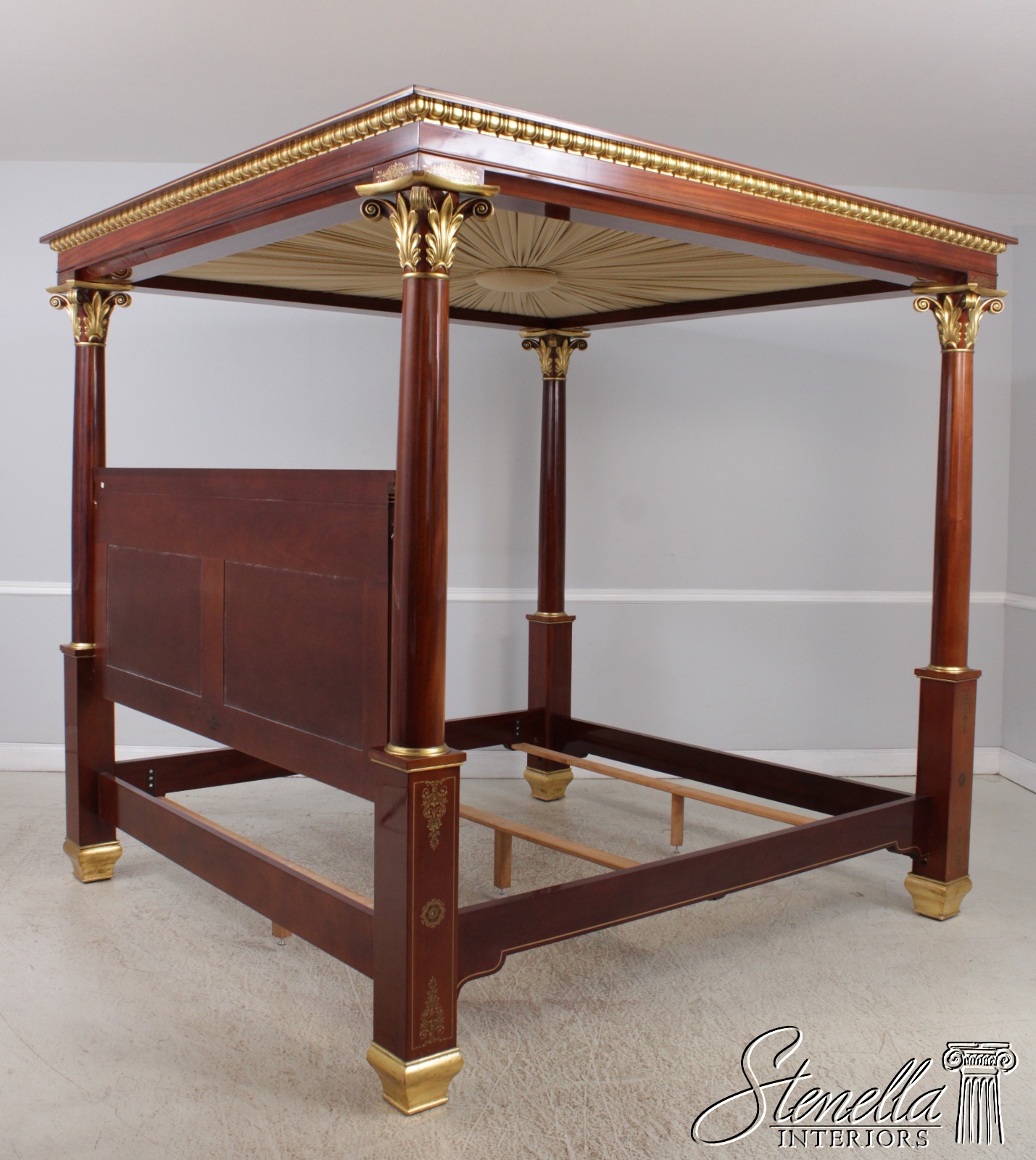 Details: Kindel Masterworks Collection Kent Finish Hand Stenciled Decorated Rich High Sheen Finish High Quality Construction Extremely Rare Model Large Impressive Bed American Empire Style Full Canopy Top w. Pleated Upholstered Insert Genuine Gold Gilt Details Offered @ Fraction Original Retail Cost