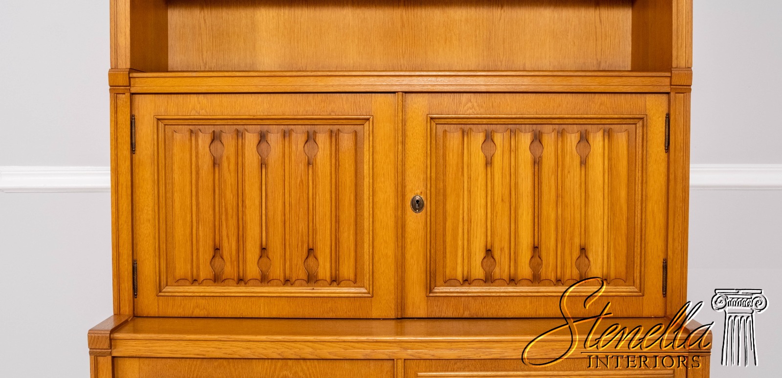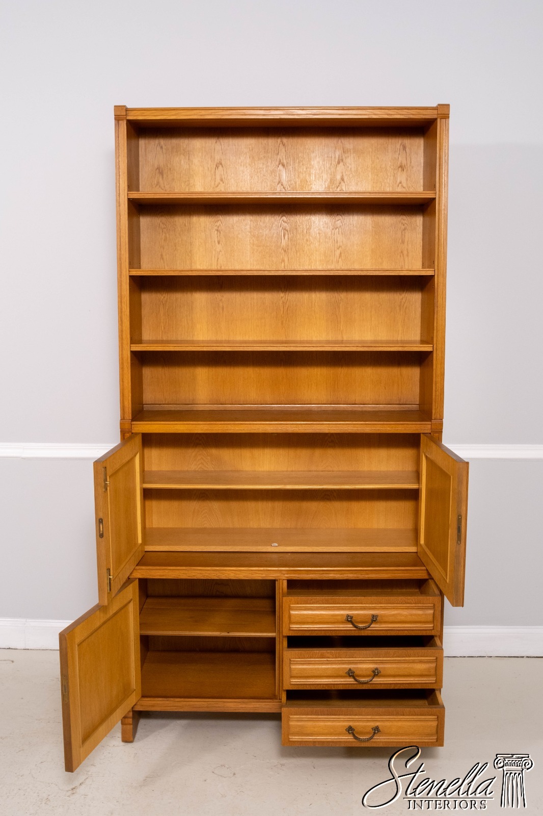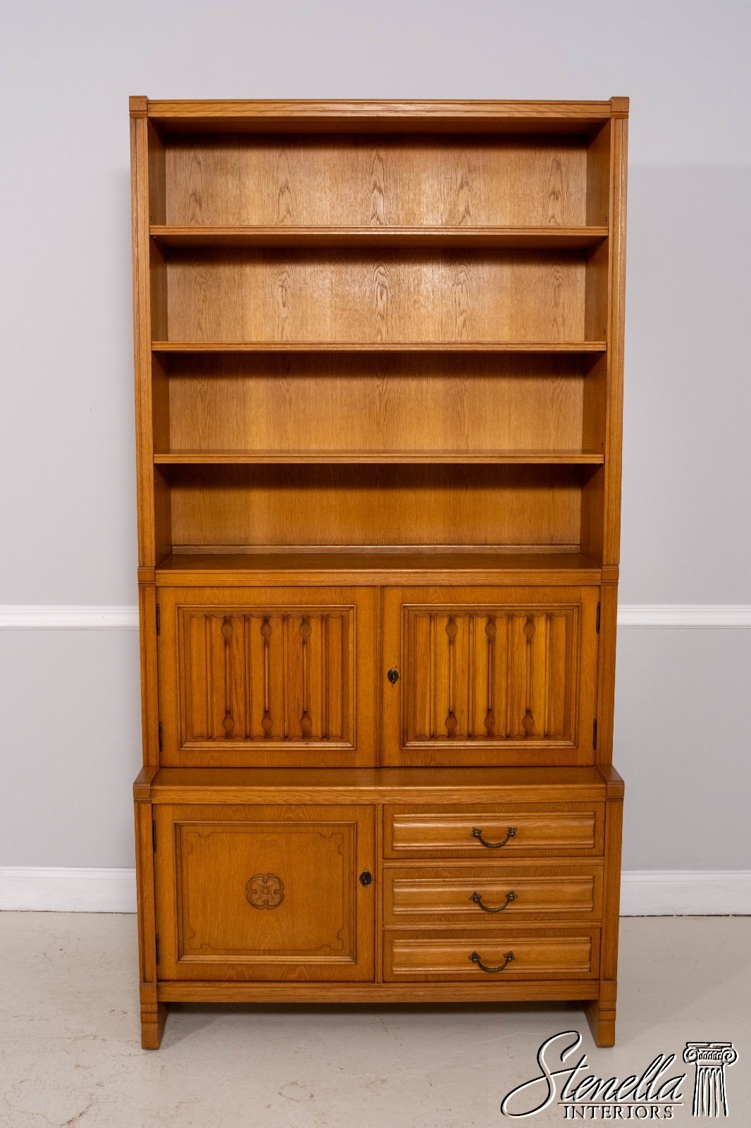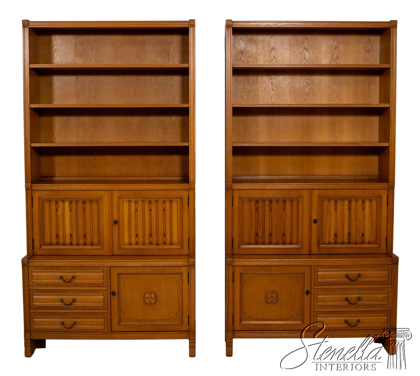 F70490: Pair German Oak 3 Piece Open Bookcase Cabinets