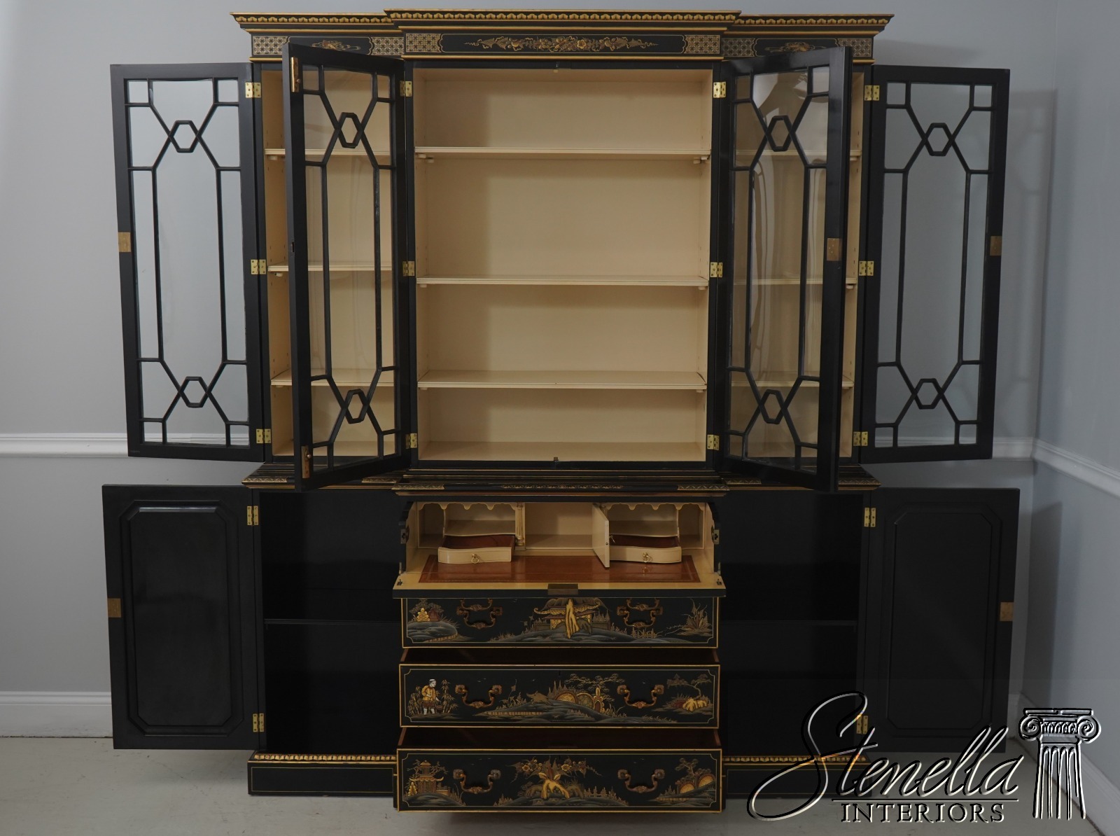 L71522: S. HILLIE English Made Chinoiserie Breakfront Bookcase
