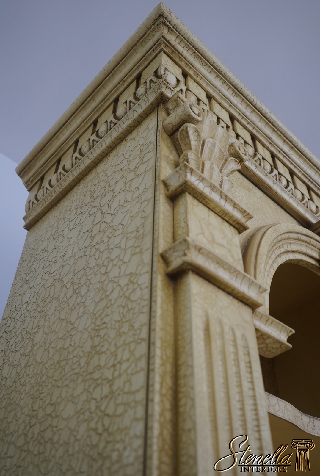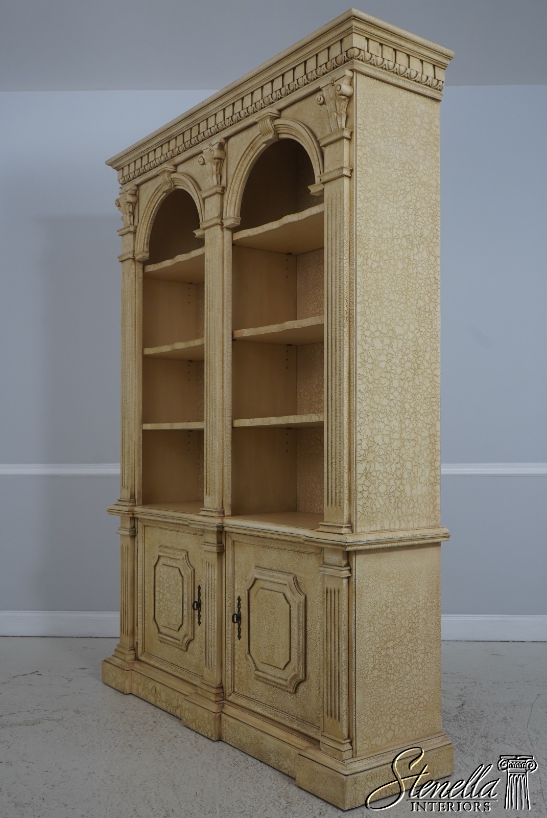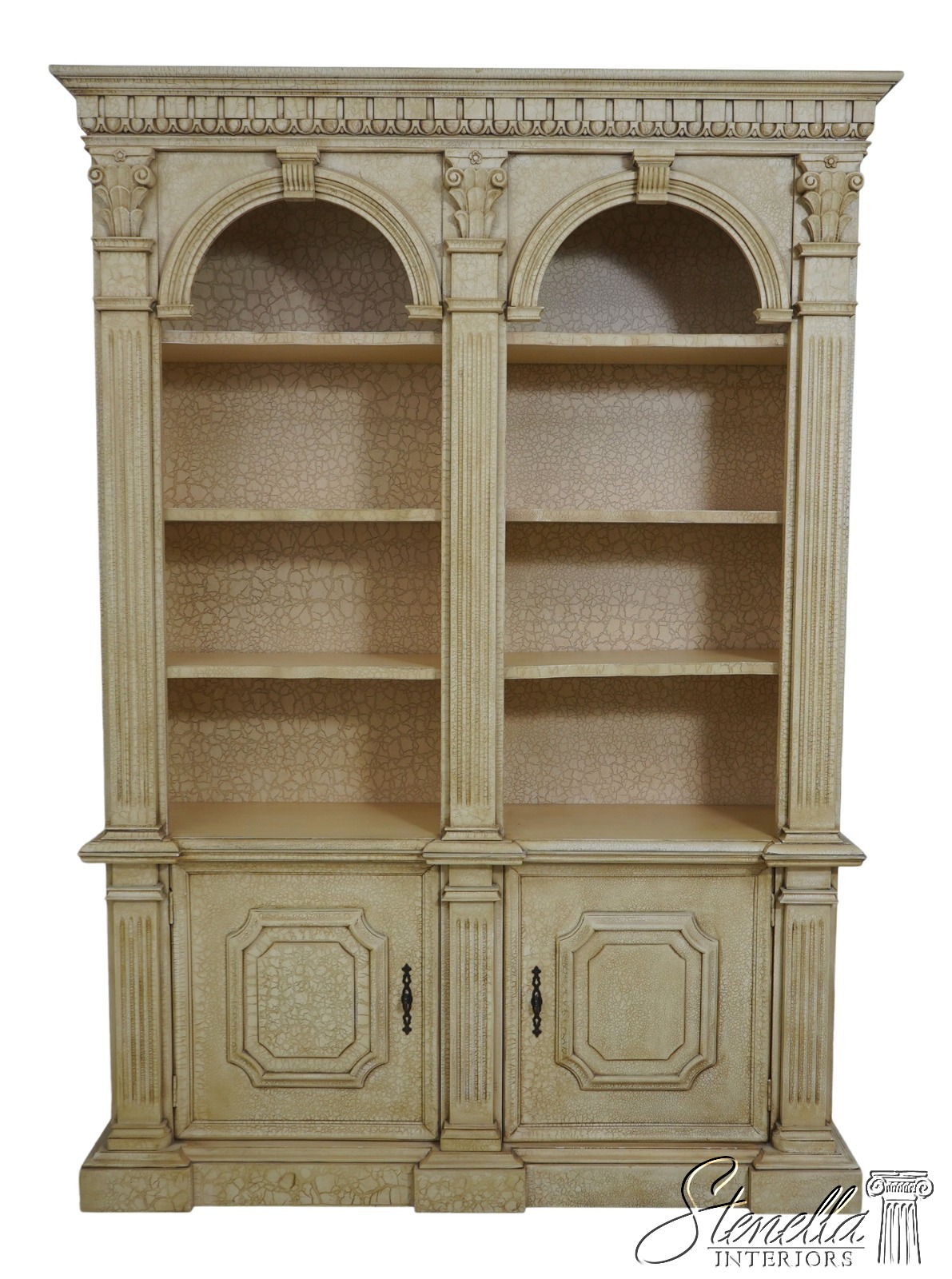L71855: Crackle Painted Finish Double Arched Top Open Bookcase