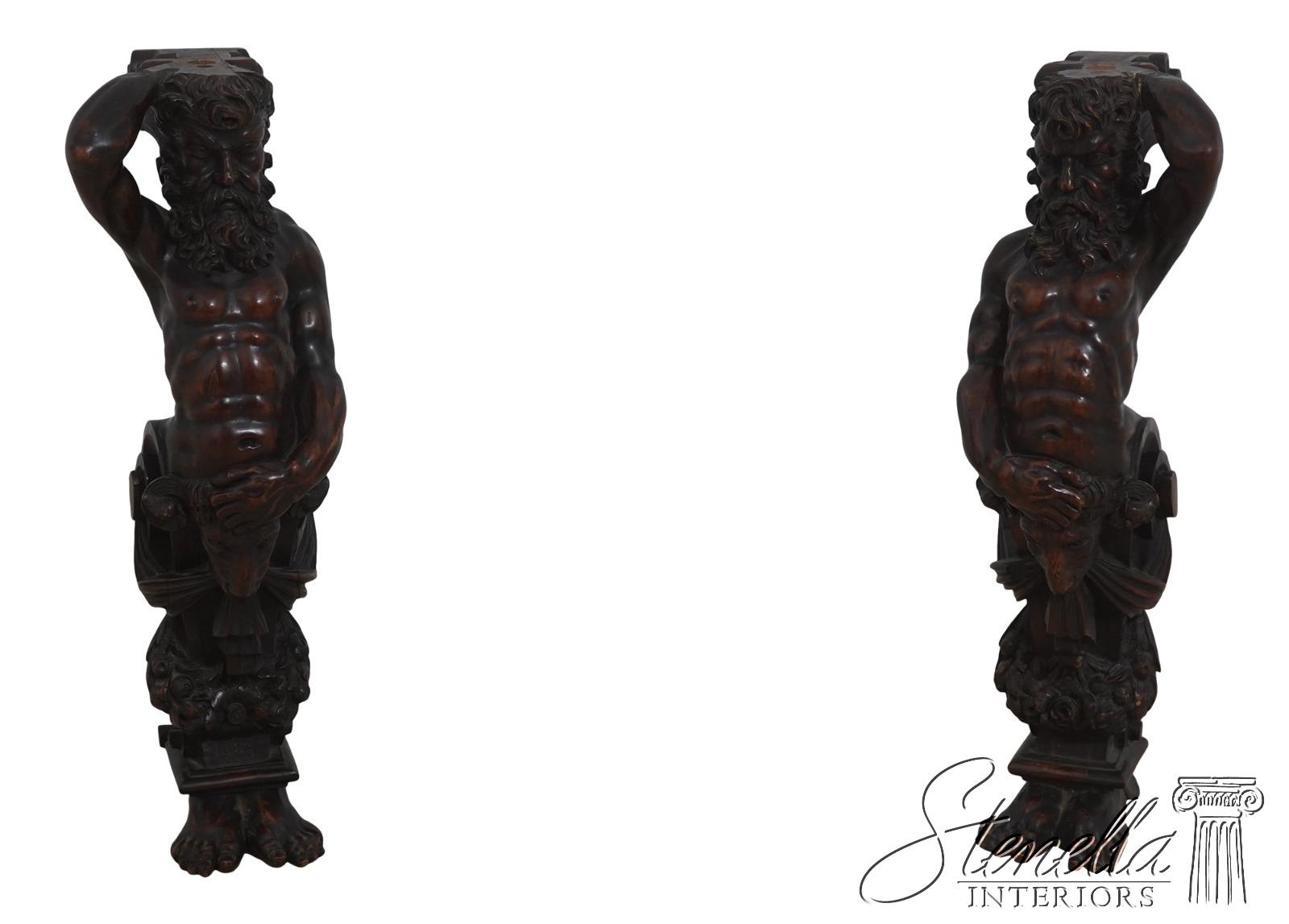F72399: Pair Antique 18th C. French Carved Sculptures Of Atlantis