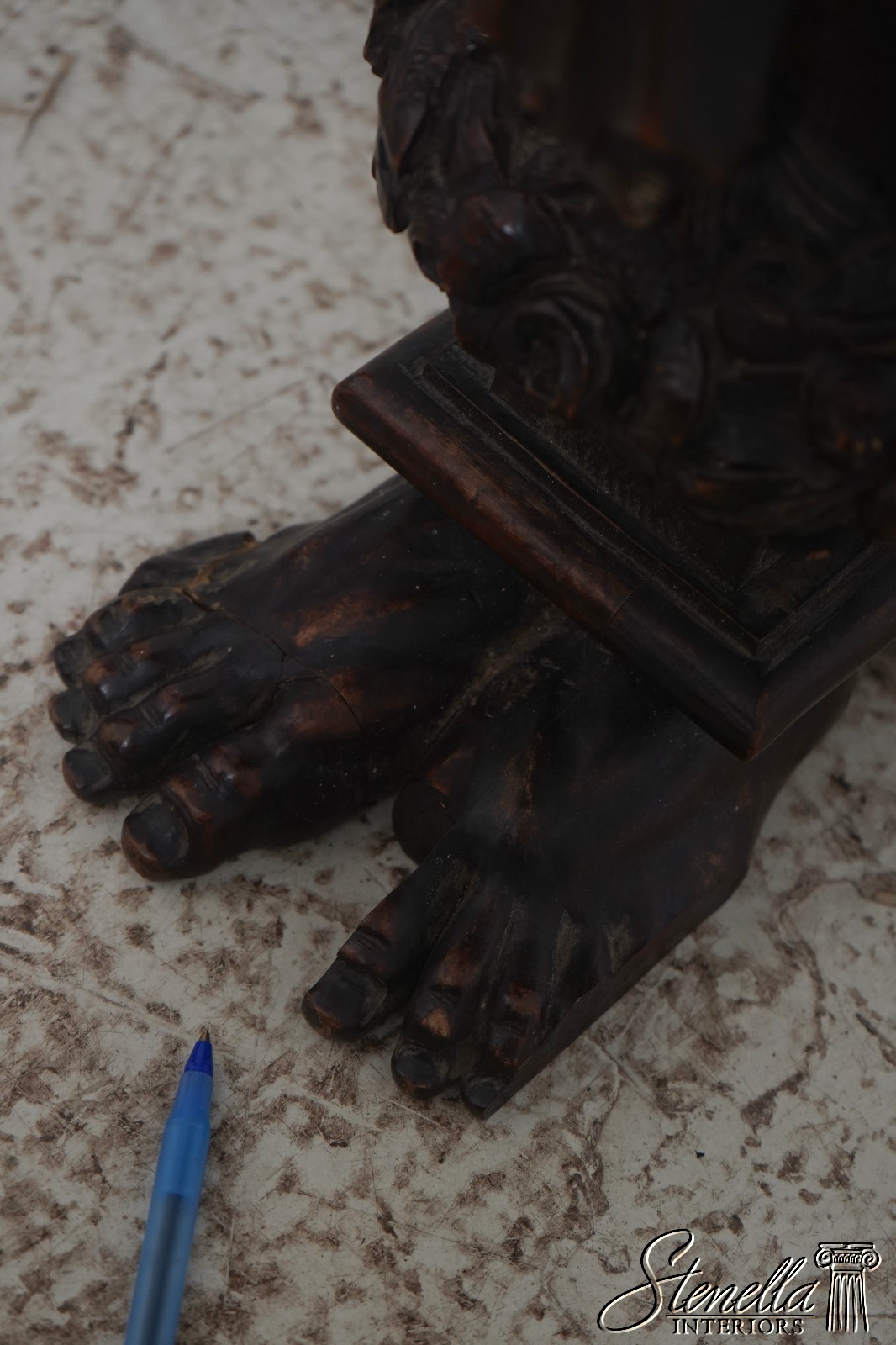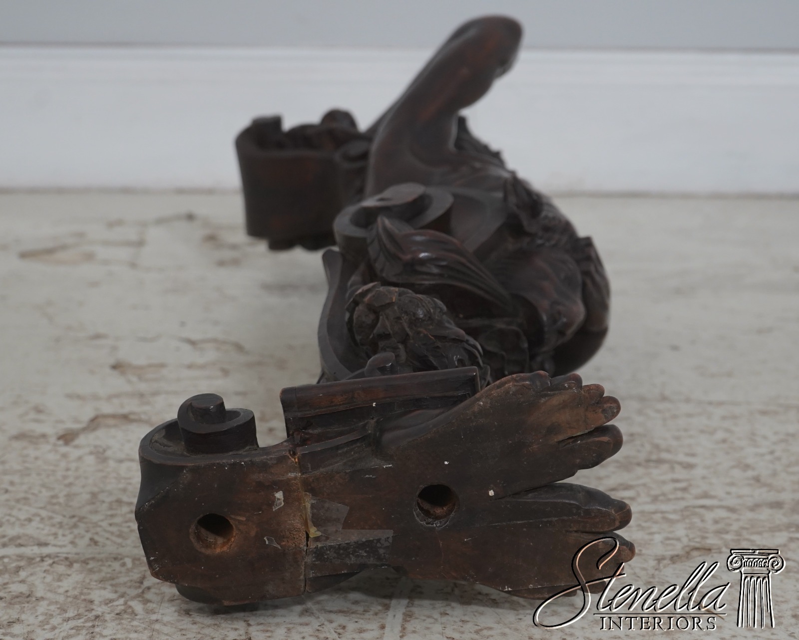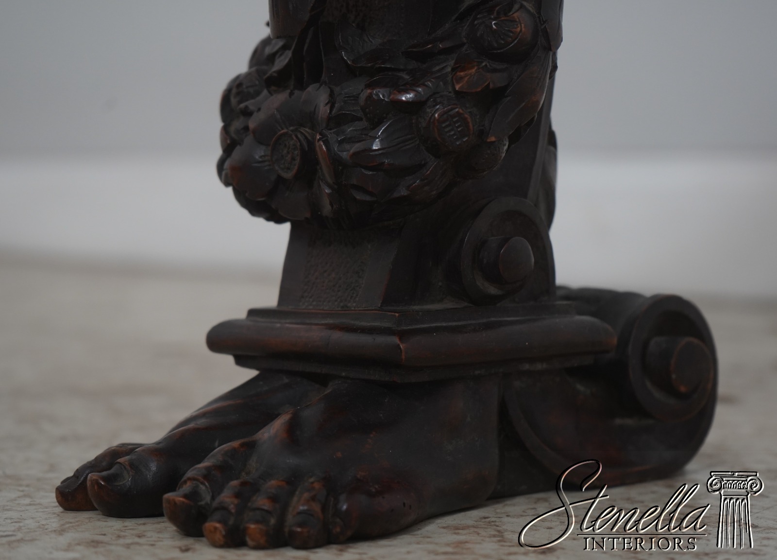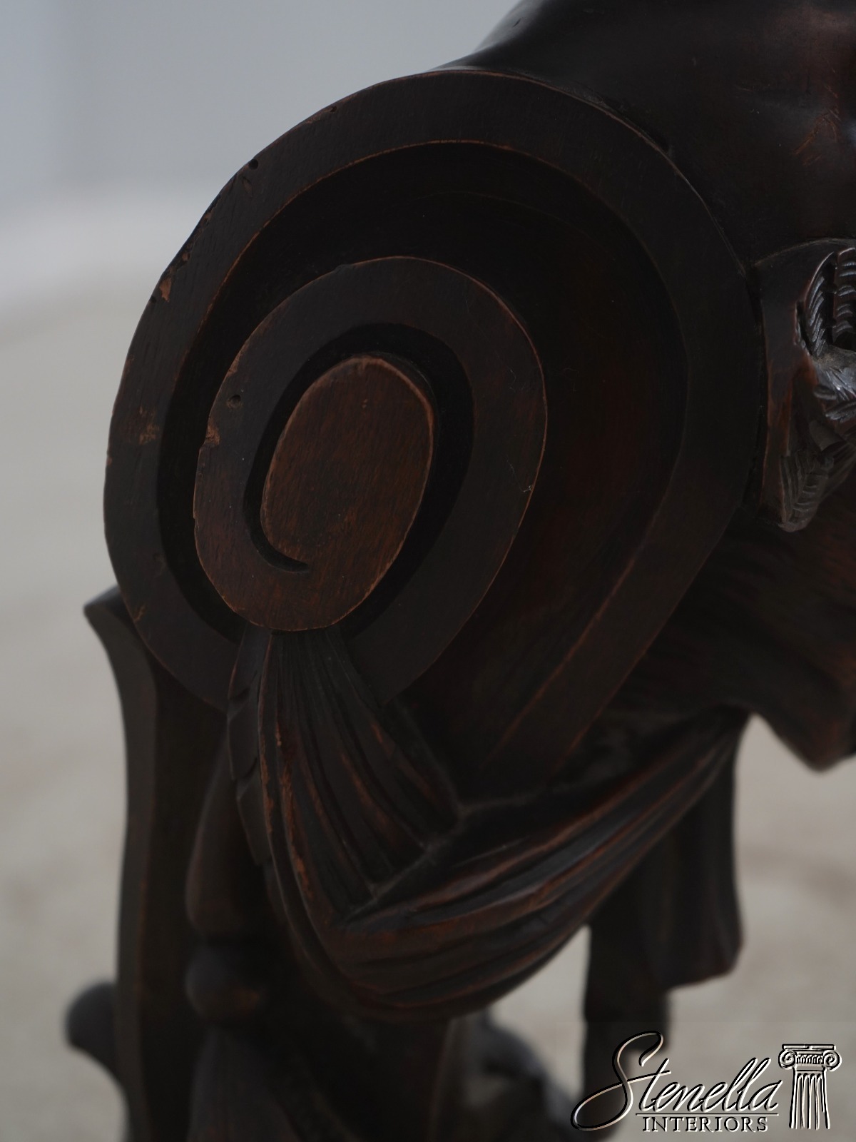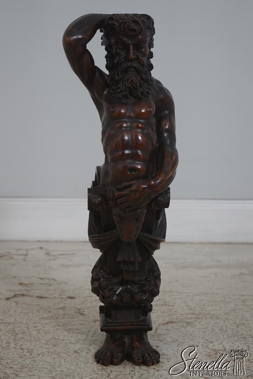 Details: Original Old Finish Extremely Rare Find w. Footed Base Carvings Of Atlantis w. Rams Head Extremely Fine Ornate Carved Details