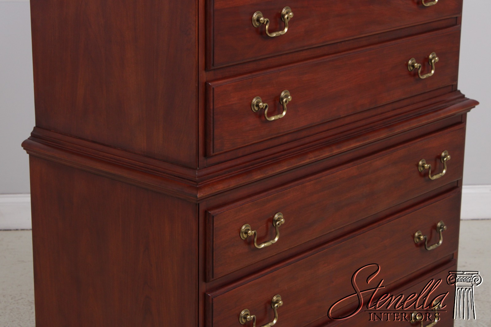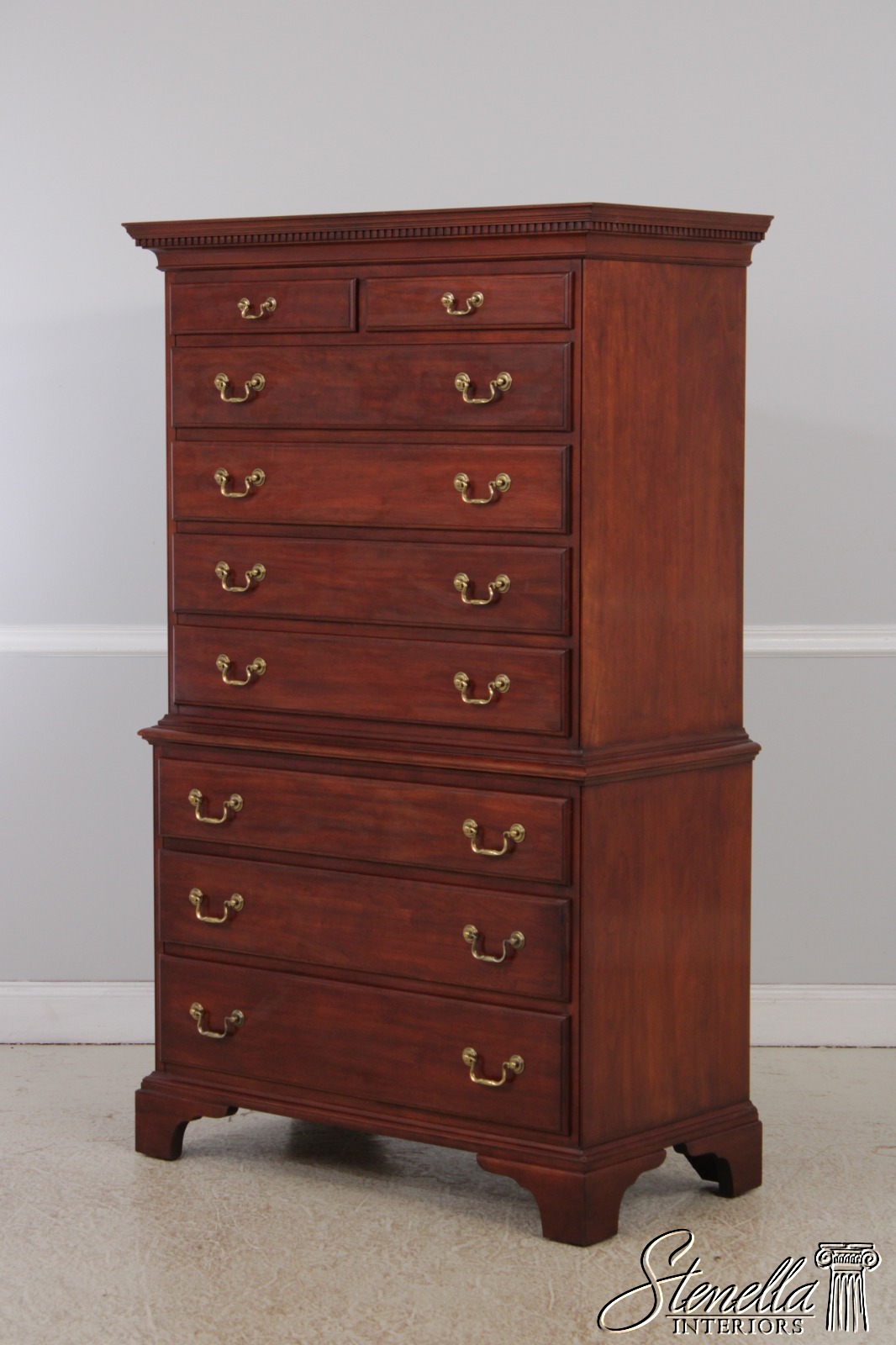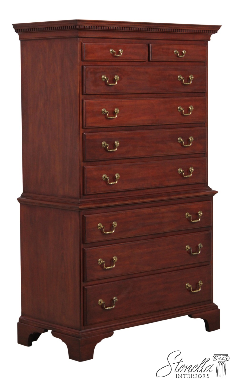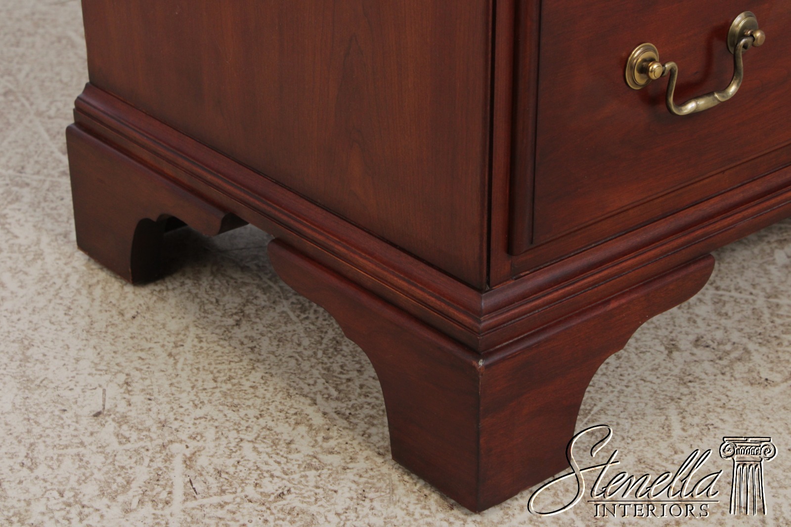 Details: Finish no.24 Model 164 Cherry Bracket Feet Dovetailed Drawer Construction High Quality Construction Large Impressive Cabinet Chippendale Style Dentil Crown Molding Solid Brass Hardware Graduated Drawers Offered @ Fraction Original Retail Cost
