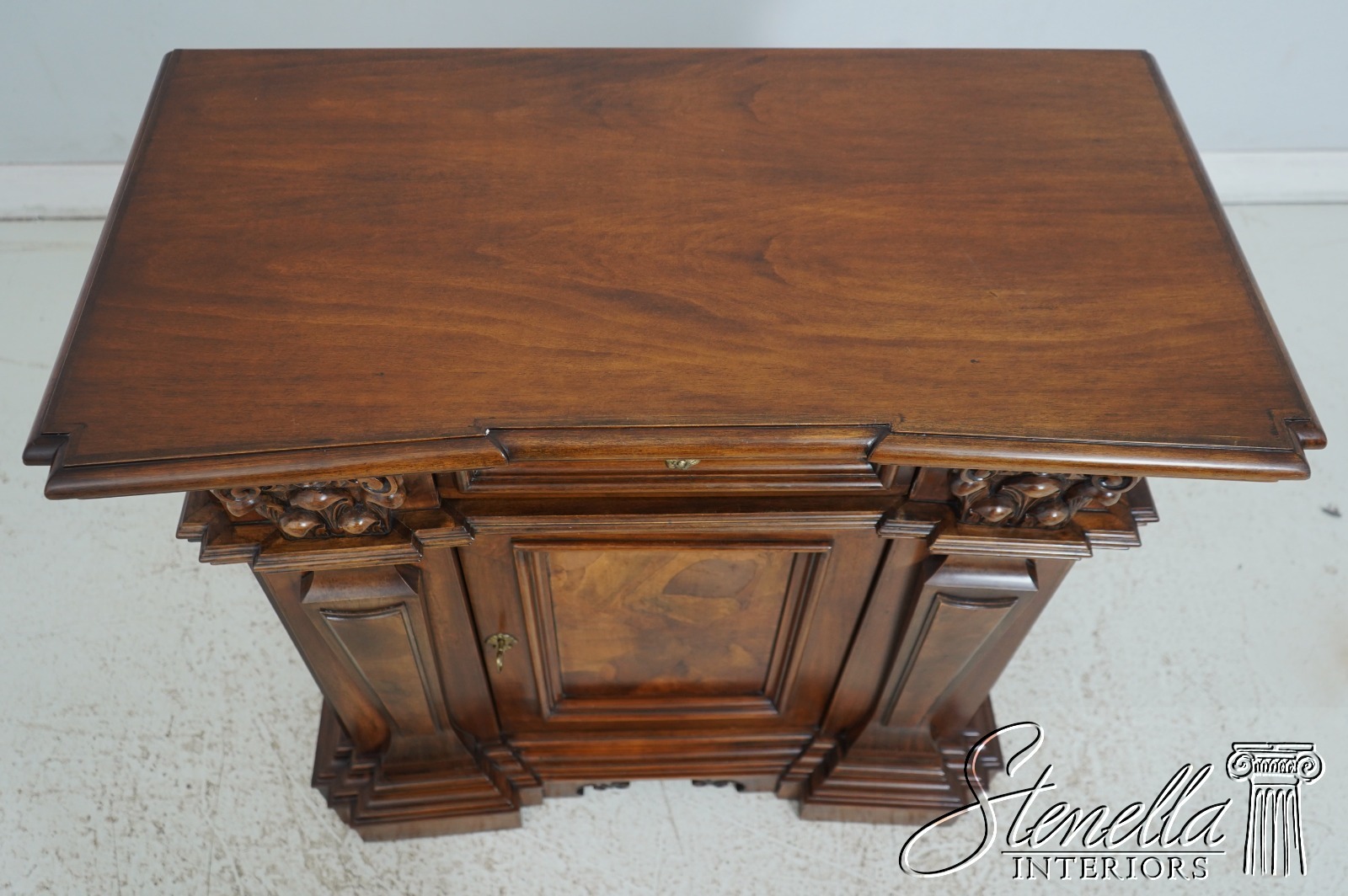 67067: Italian 1 Door 1 Drawer Walnut Finish Commode Chest