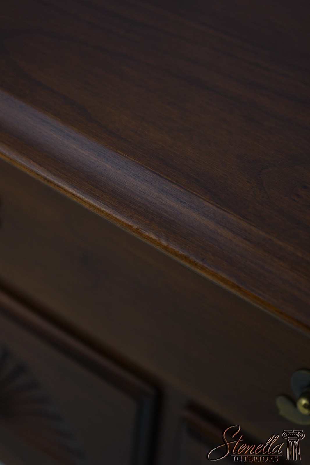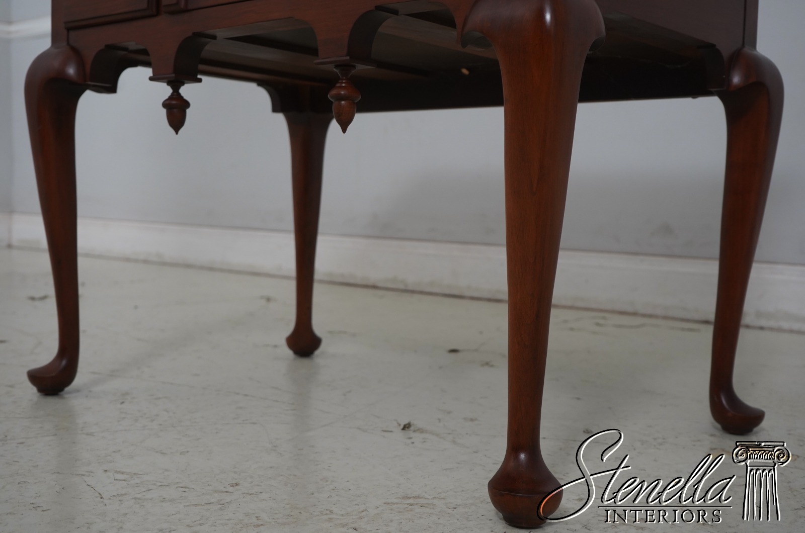Details: Finish no.24 VA Galleries Cherry Dovetailed Drawer Construction Fine Carved Details High Quality Construction Clip Corners Acorn Drop Finials Shell Carving Key Locking w. Key Offered @ Fraction Original Retail Cost
