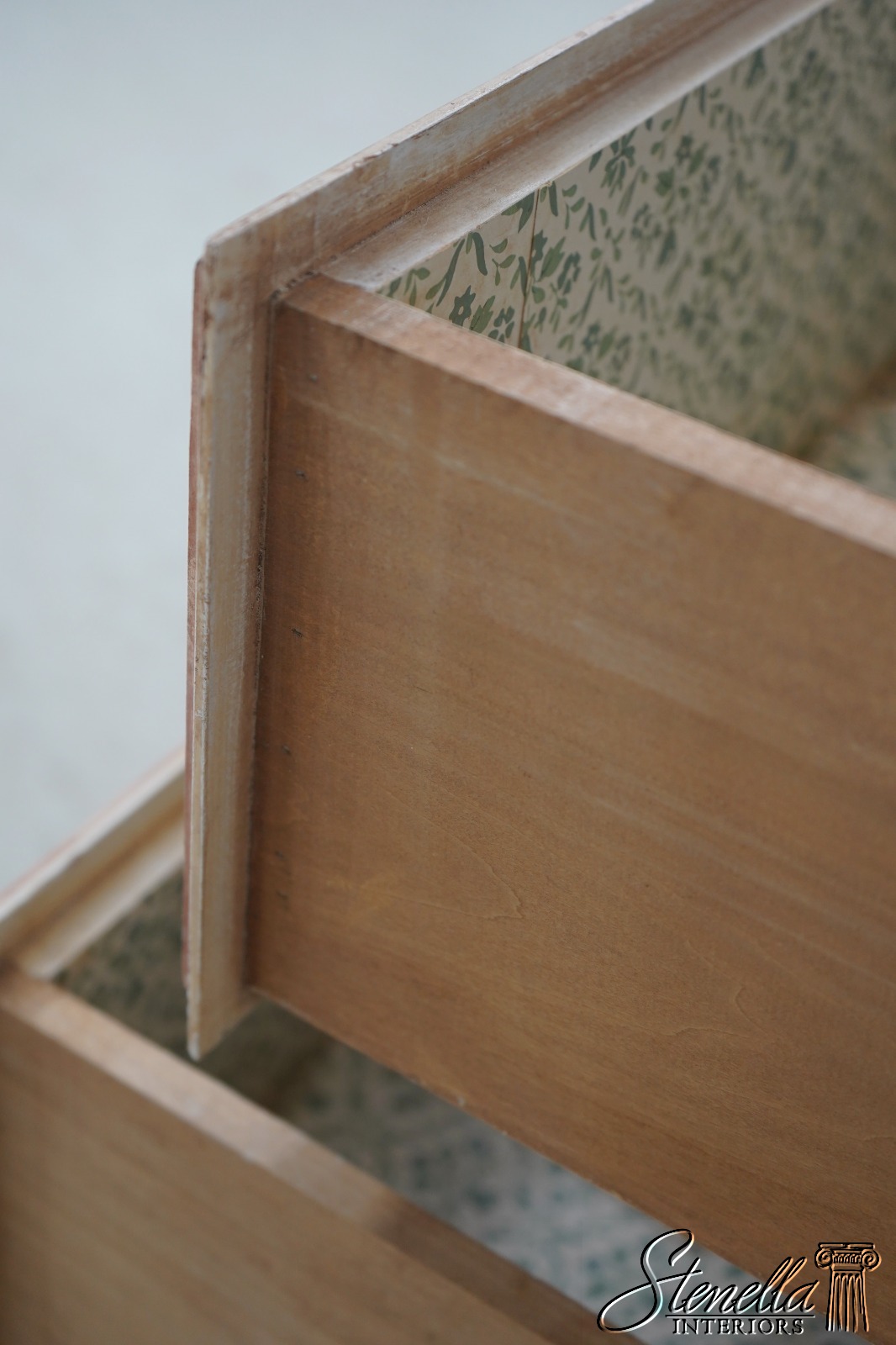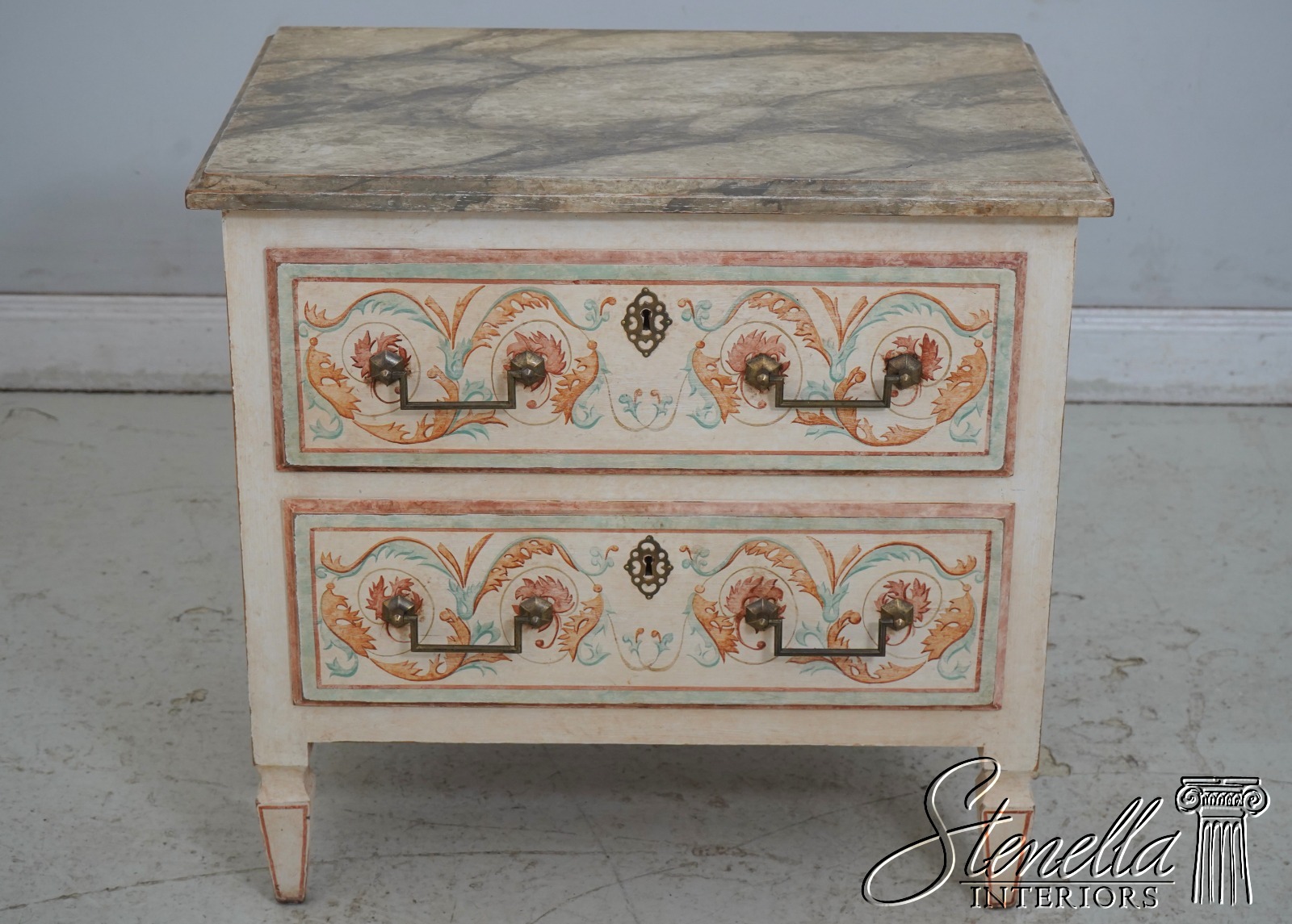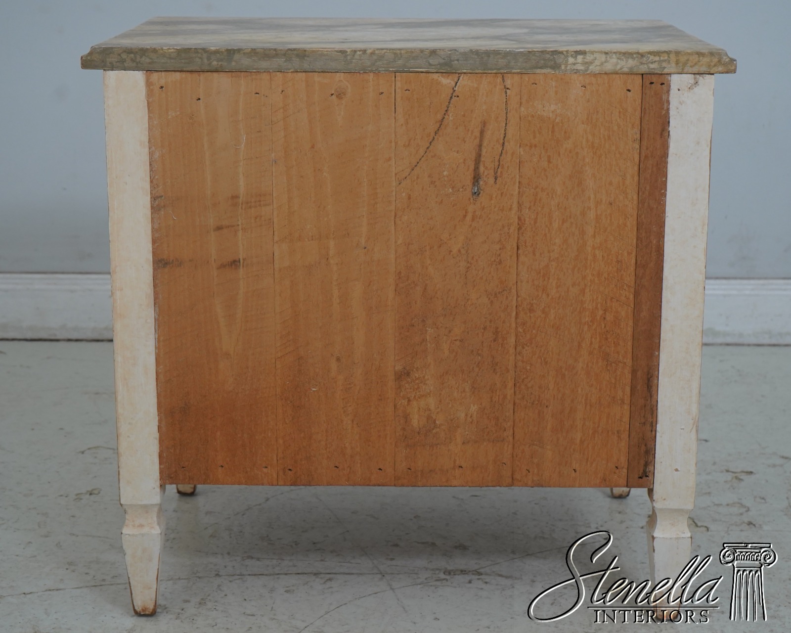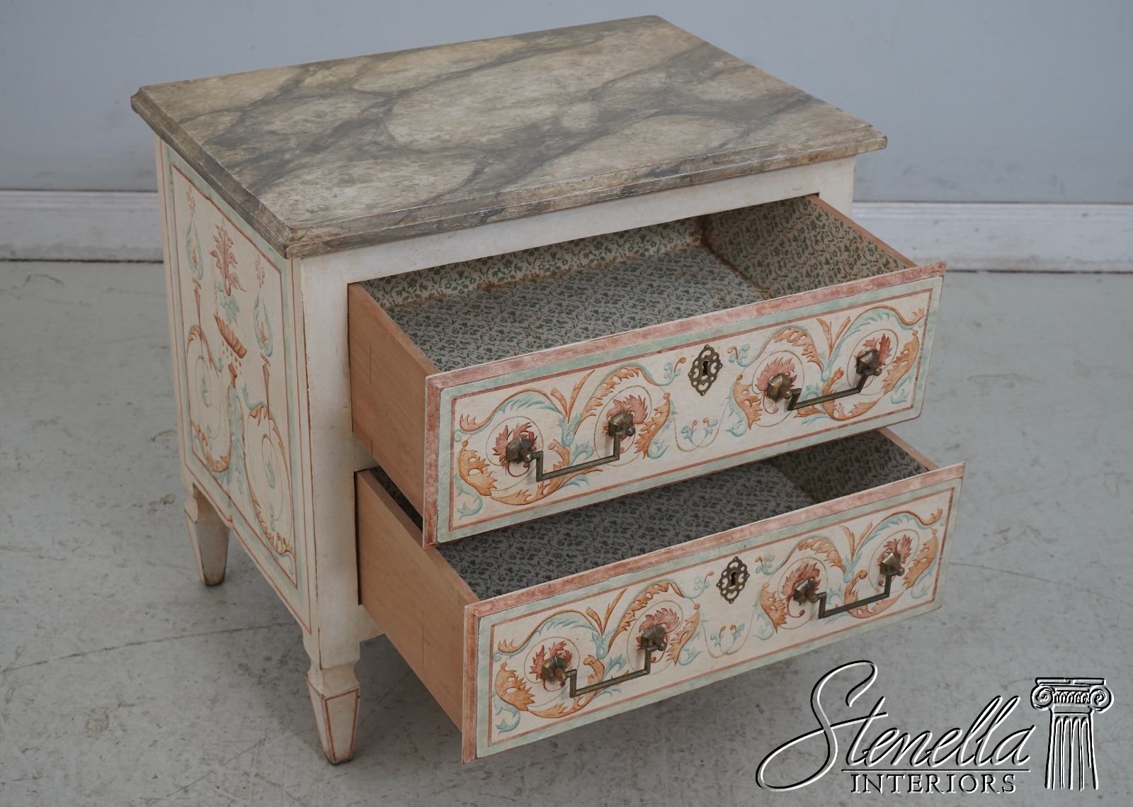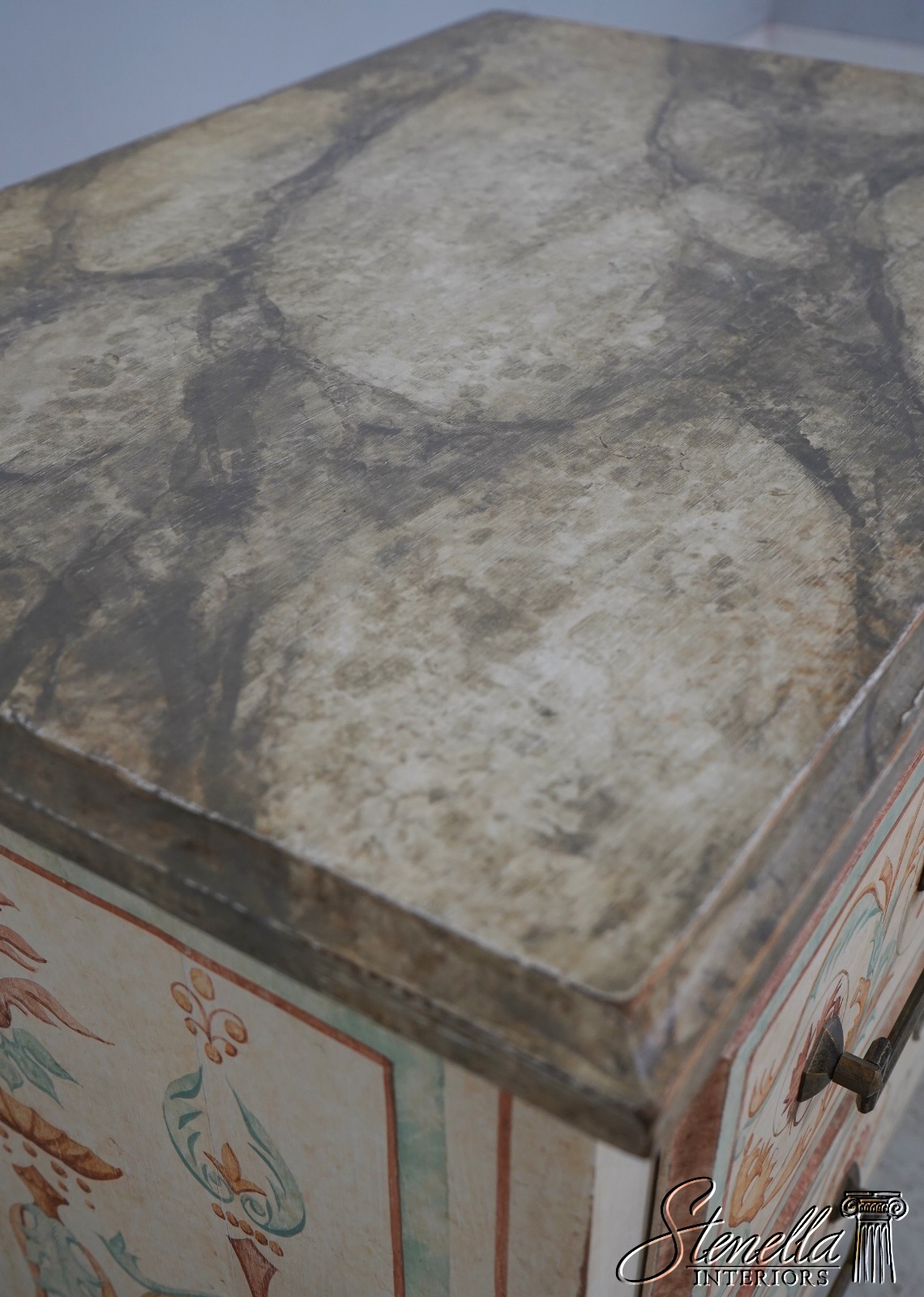 Details: Quality Construction French Style Stunning Hand Painted Finish Solid Brass Hardware Paper Lined Drawers Intentional Distressing To Sides Faux Marble Painted Top Un-Marked As To Manufacture Offered @ Fraction Original Retail Cost