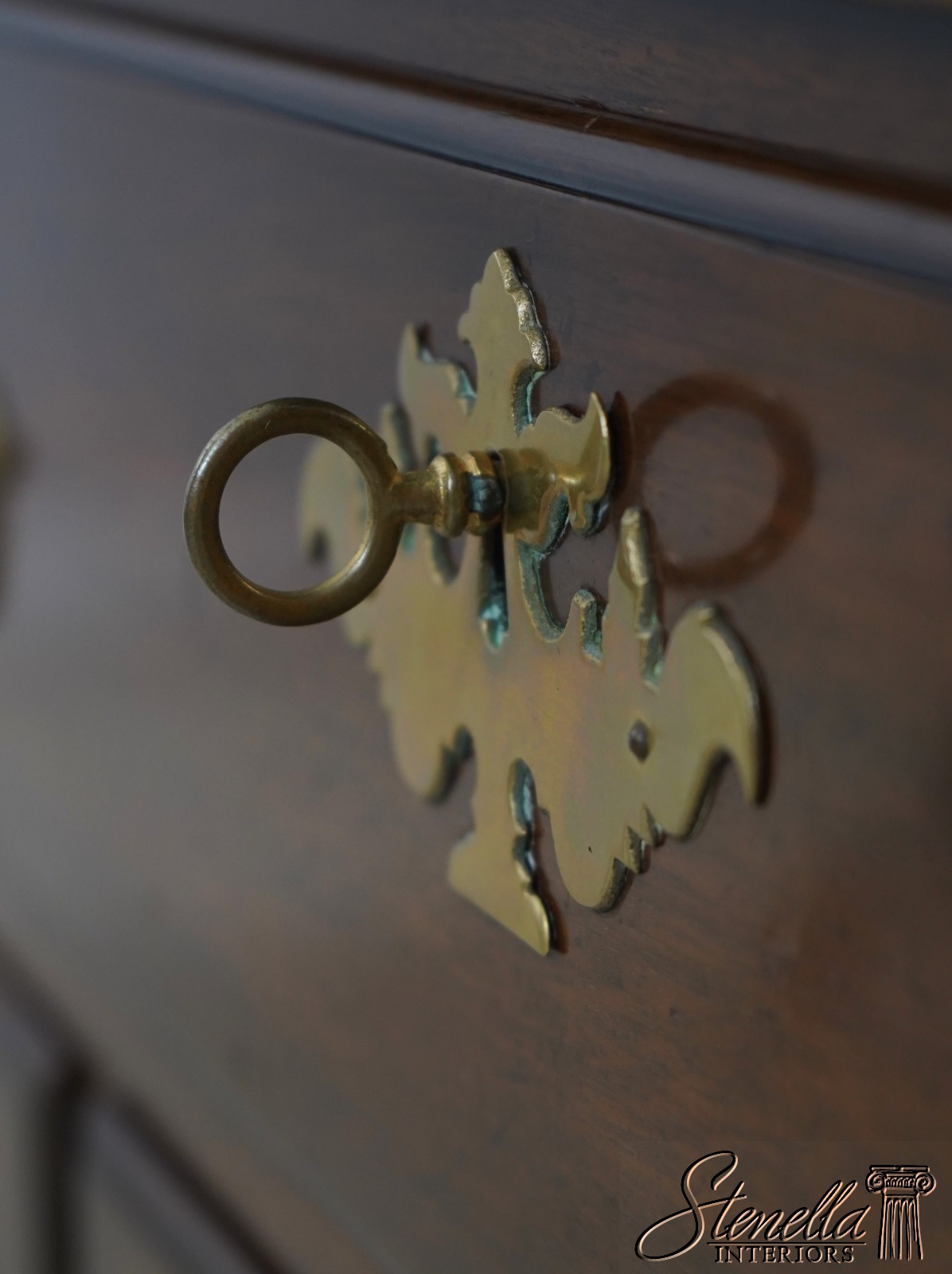 Details: Light Heirloom Finish Colonial Williamsburg Mahogany Ball & Claw Feet Dovetailed Drawer Construction Fine Carved Details High Quality Construction Quarter Column Sides Queen Anne Legs 18 C. Design Chippendale Style Solid Brass Hardware Key Locking w. Key Offered @ Fraction Original Retail Cost