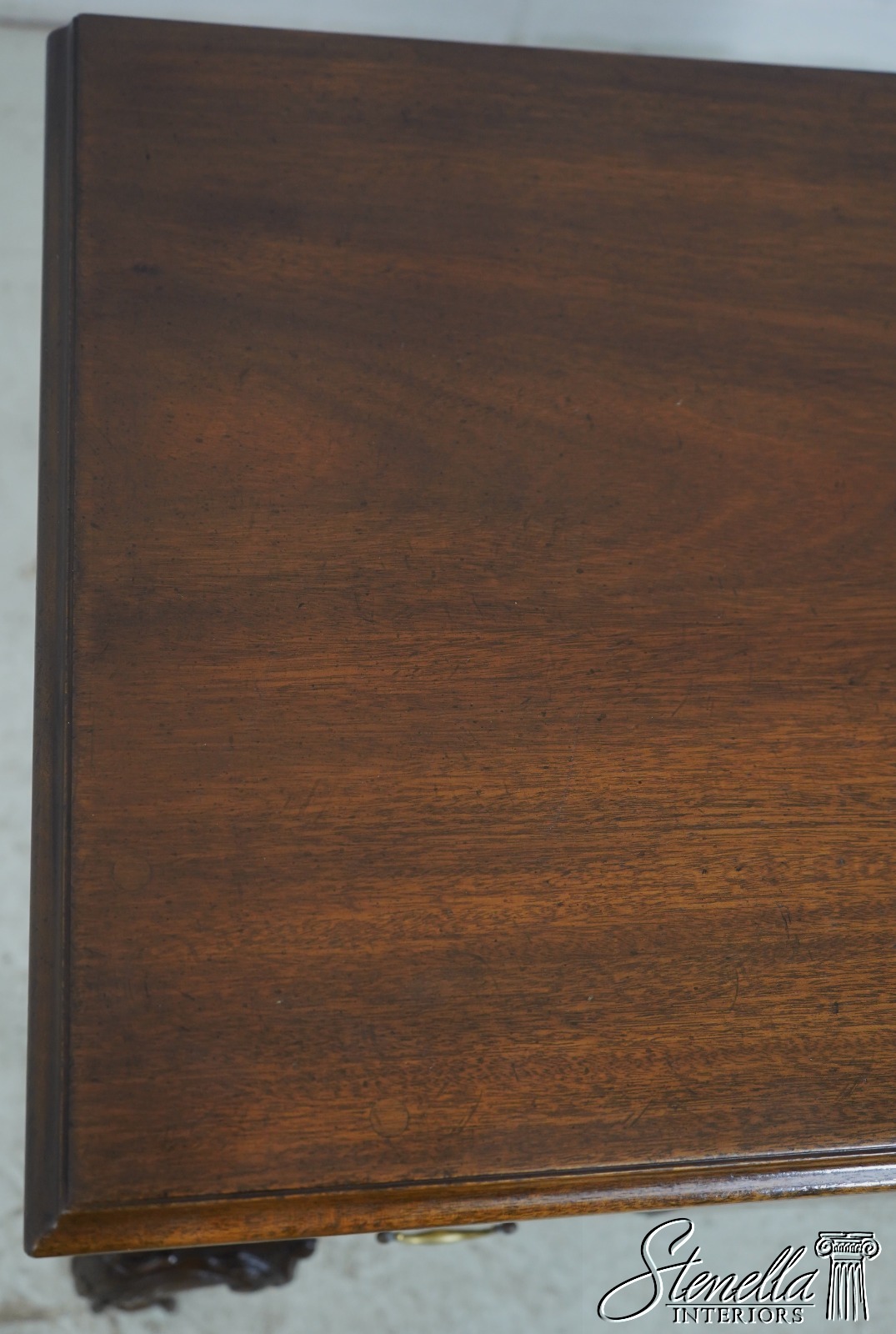 Details: Light Heirloom Finish Colonial Williamsburg Mahogany Ball & Claw Feet Dovetailed Drawer Construction Fine Carved Details High Quality Construction Quarter Column Sides Queen Anne Legs 18 C. Design Chippendale Style Solid Brass Hardware Key Locking w. Key Offered @ Fraction Original Retail Cost