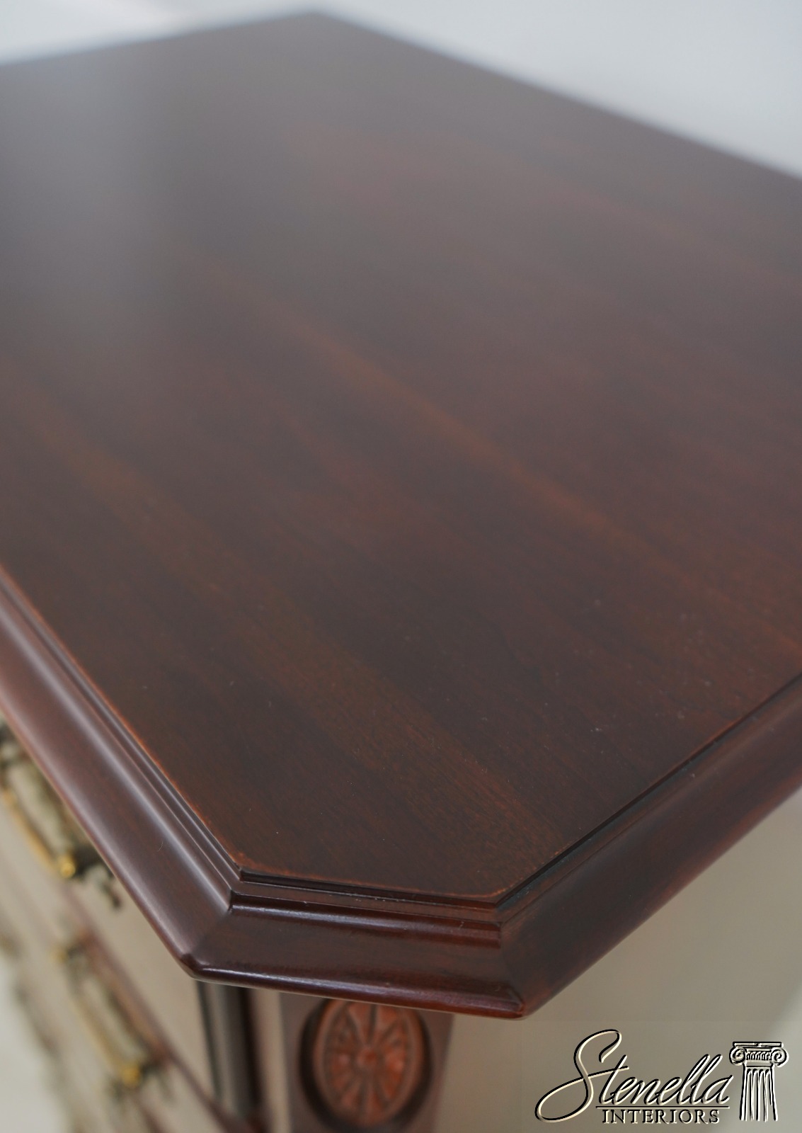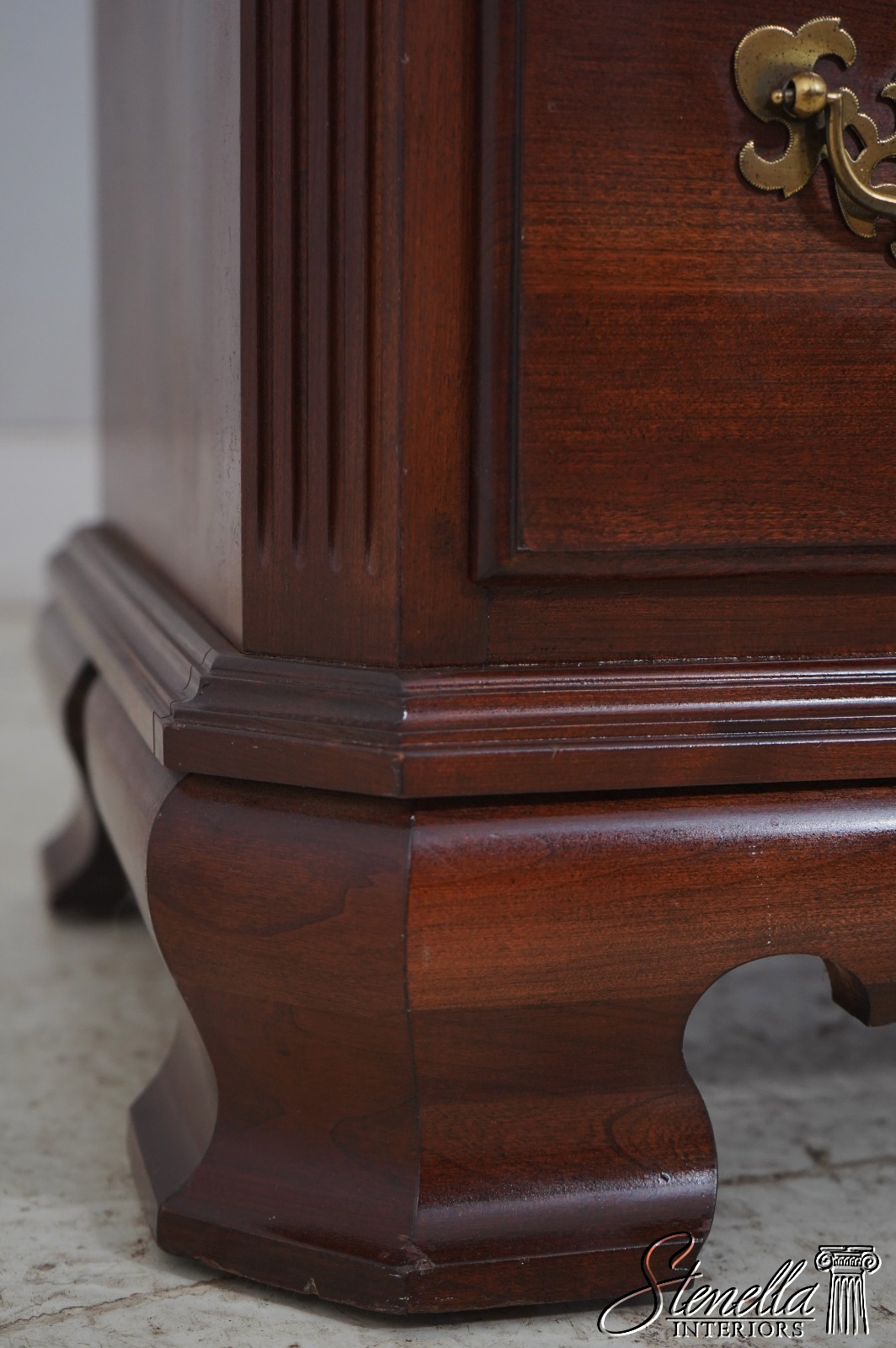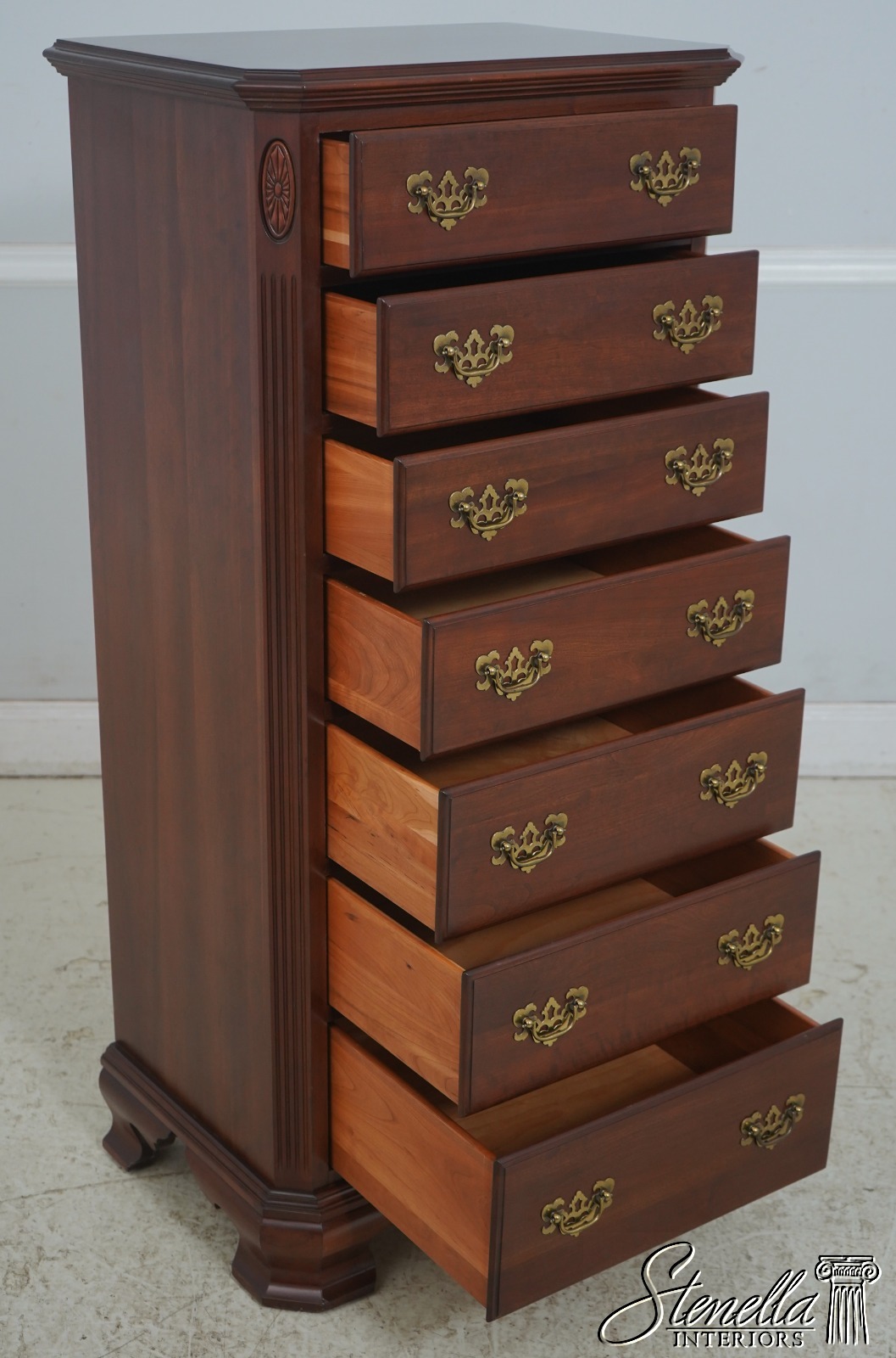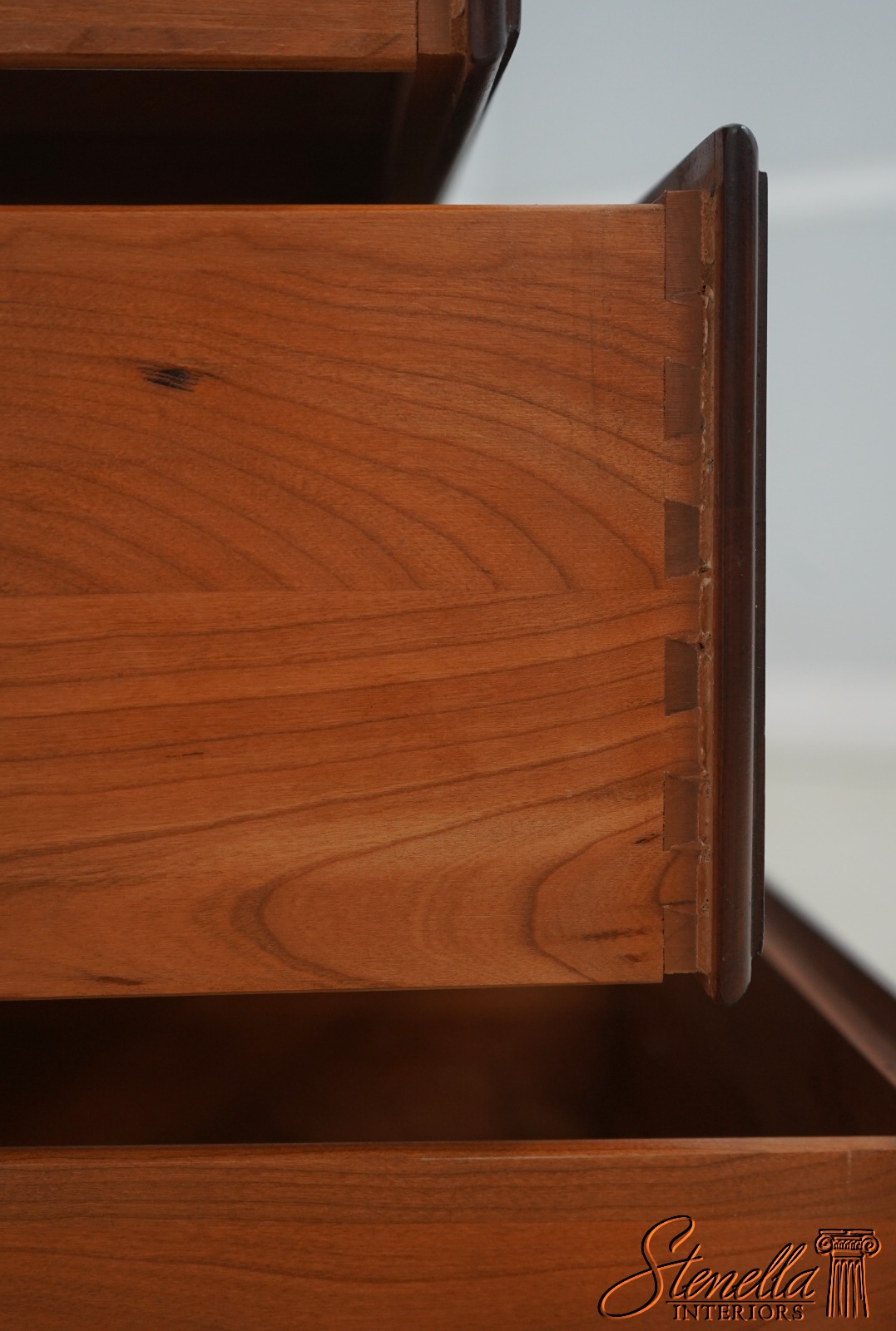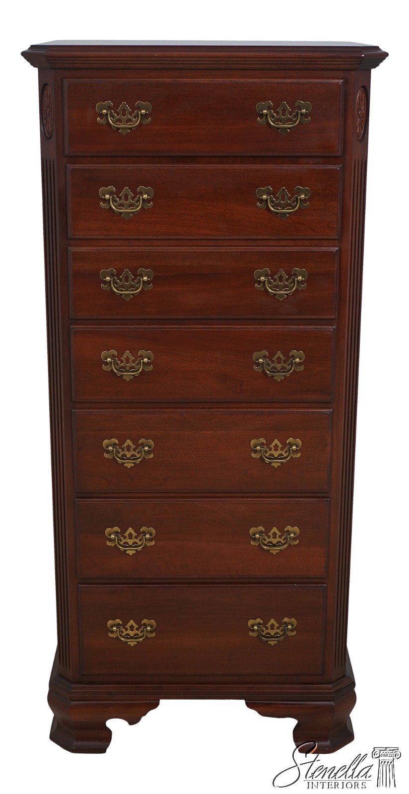 Details: Finish no.205 Cherry Bracket Feet Dovetailed Drawer Construction Fine Carved Details High Quality Construction Quarter Column Sides Solid Brass Hardware Felt Lined Drawer For Jewelry Offered @ Fraction Original Retail Cost