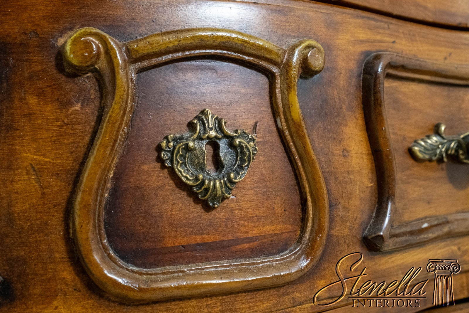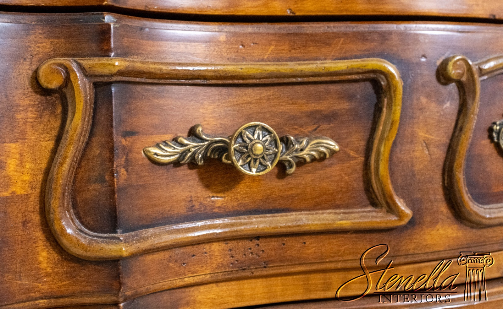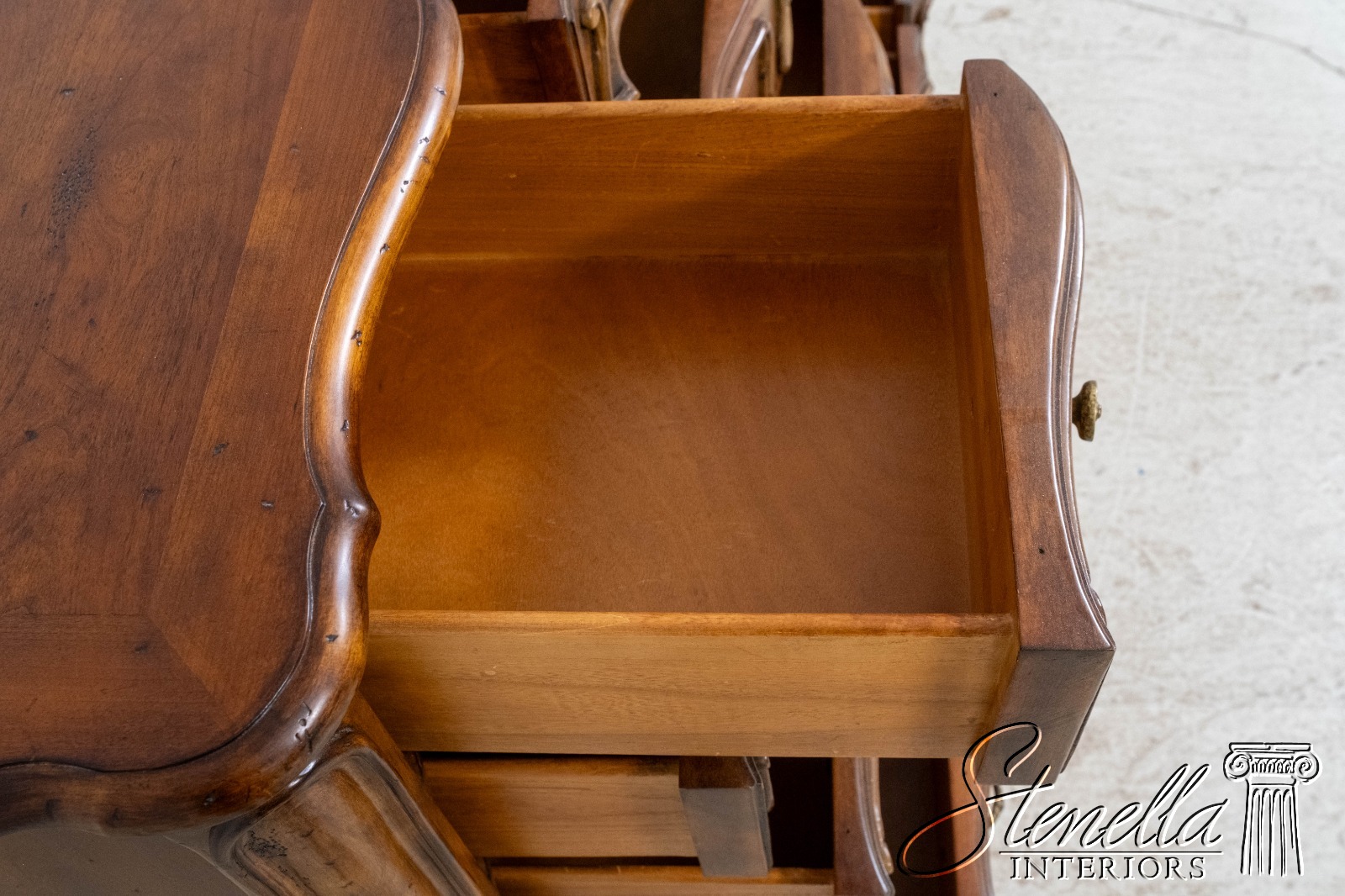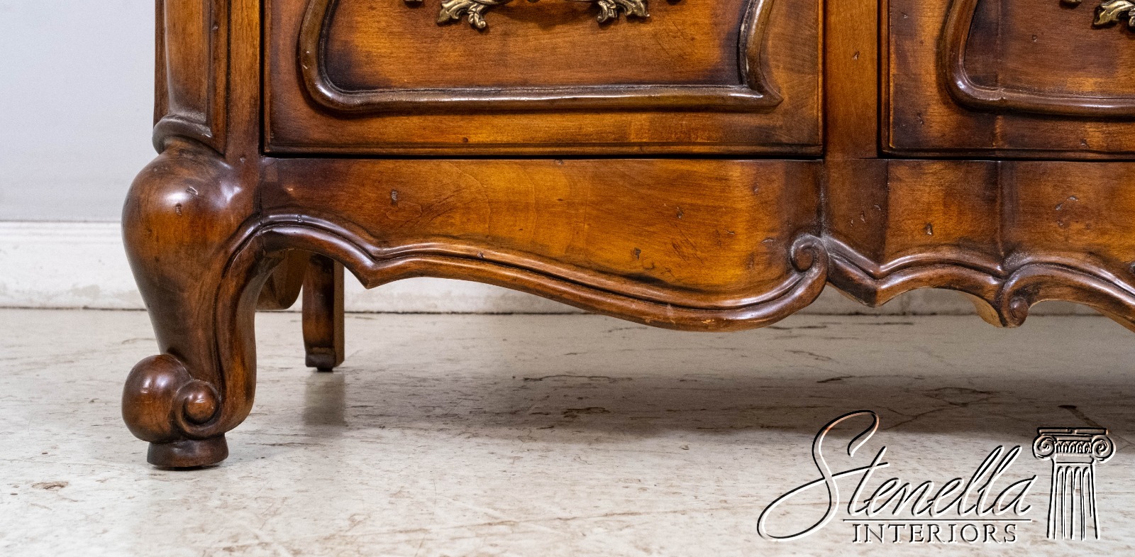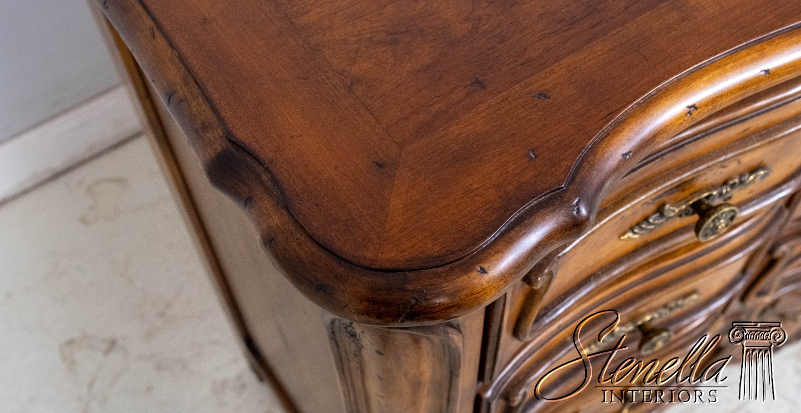 Details: Factory Distressed Large Impressive Chest Cherry Walnut Finish French Style