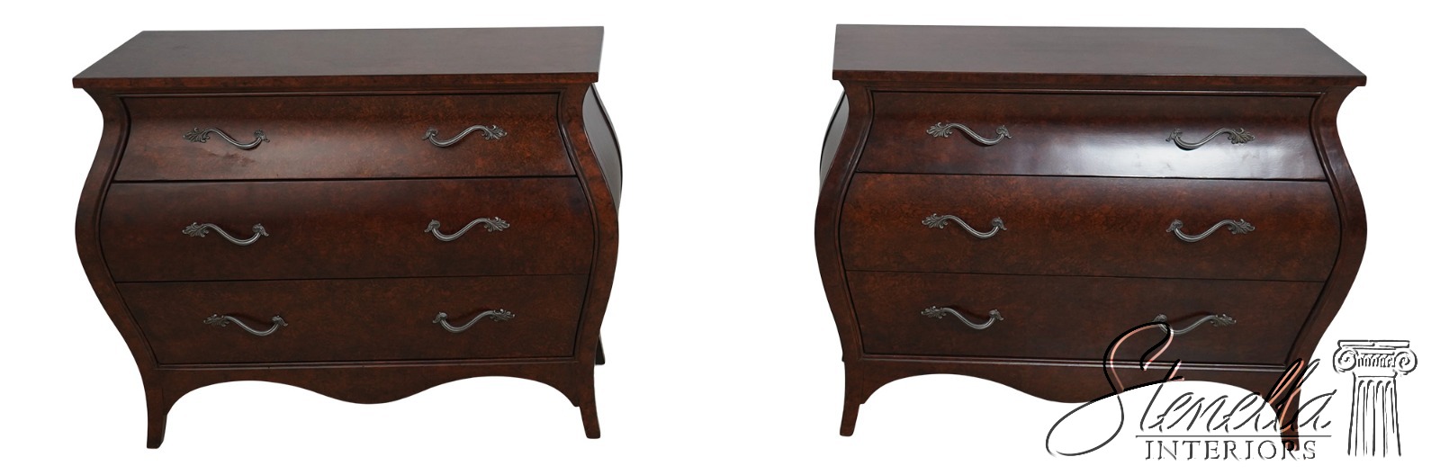 70115: Pair Of ETHAN ALLEN Bombe Faux Burlwood Painted 3 Drawer Chests