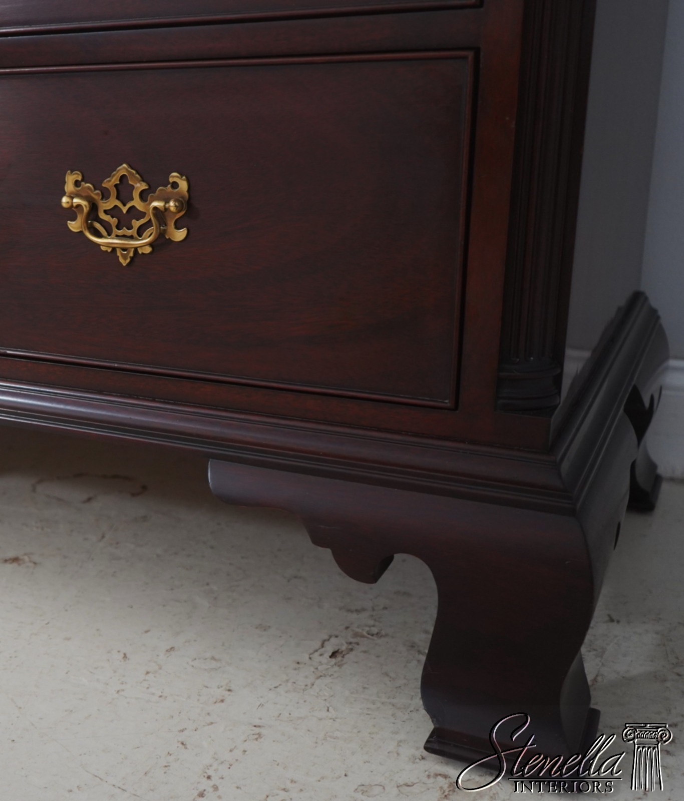 Details: Mahogany Bracket Feet Dovetailed Drawer Construction Fine Carved Details High Quality Construction Large Impressive Chest Quarter Columns Sides Pediment Top Chippendale Style Dentil Crown Molding Solid Brass Hardware 2 Pieces Key Locking Offered @ Fraction Original Retail Cost