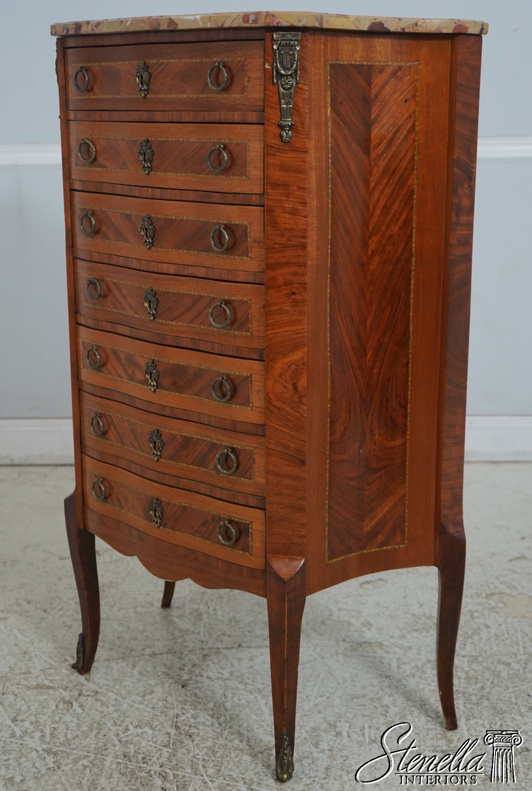 L70156: Vintage French Louis XV Style 7 Drawer Semanier Chest w. Marble Top