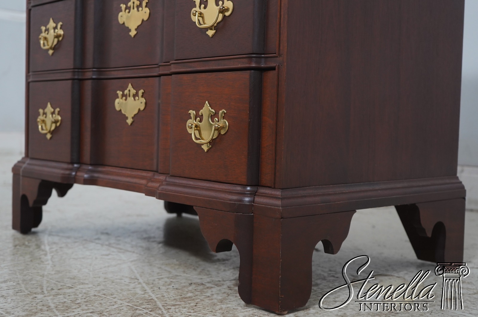 Details: Mahogany Bracket Feet Dovetailed Drawer Construction High Quality Construction 18 C. Design Chippendale Style Hand Rubbed Finish Solid Brass Hardware 4 Drawers Faux Key Plates Offered @ Fraction Original Retail Cost
