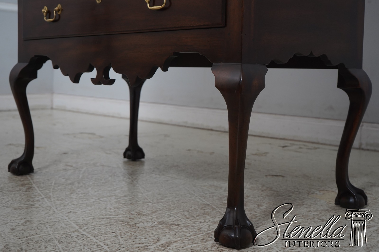 This beautiful chest would be a wonderful addition to your home. Closely grained mahogany with a detailed scalloped skirt Featuring graceful cabriole legs with ball & claw feet Bail and rosette brasses Original is circa 1760