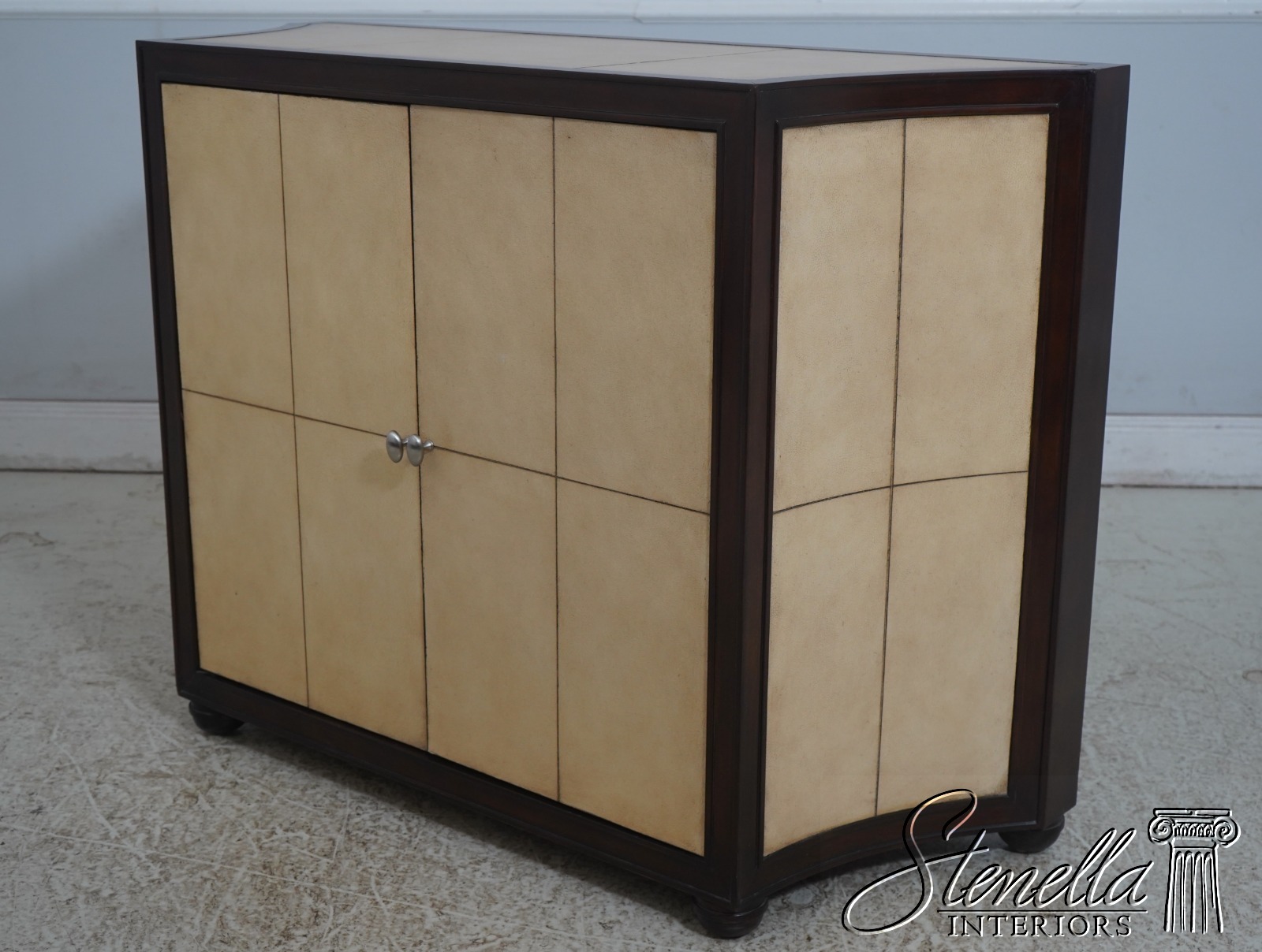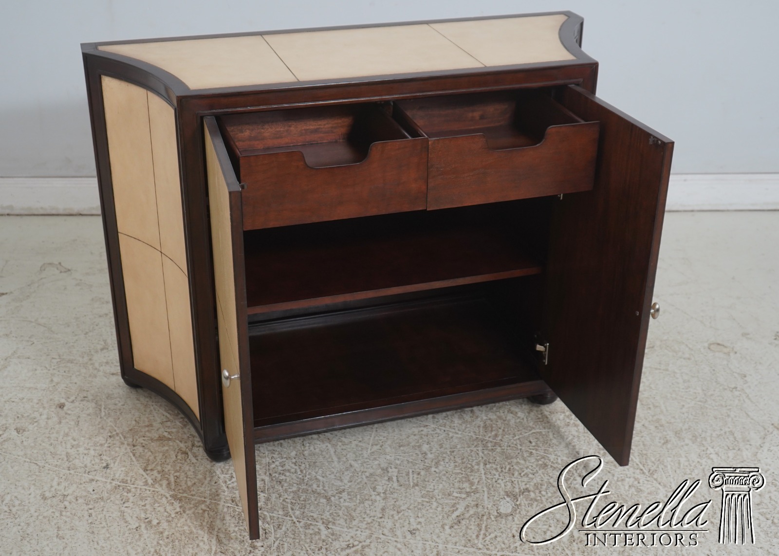 70315: KREISS Leather Surface Mahogany Modern Console Cabinet
